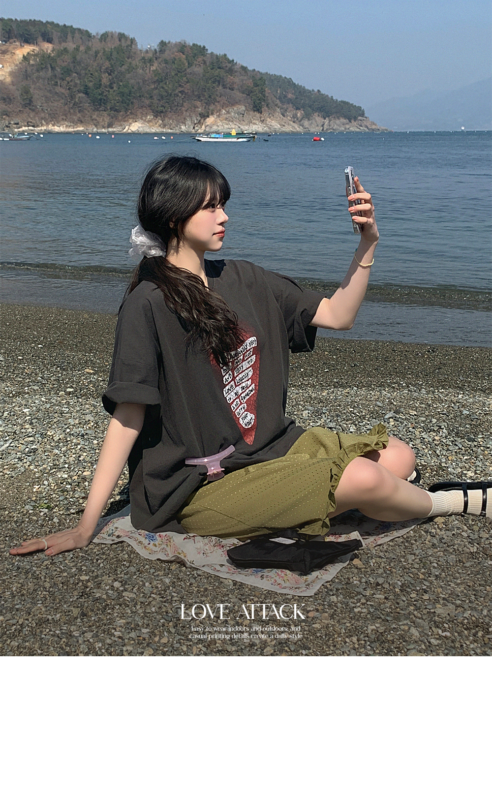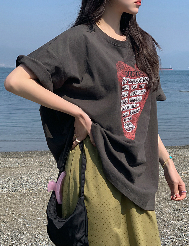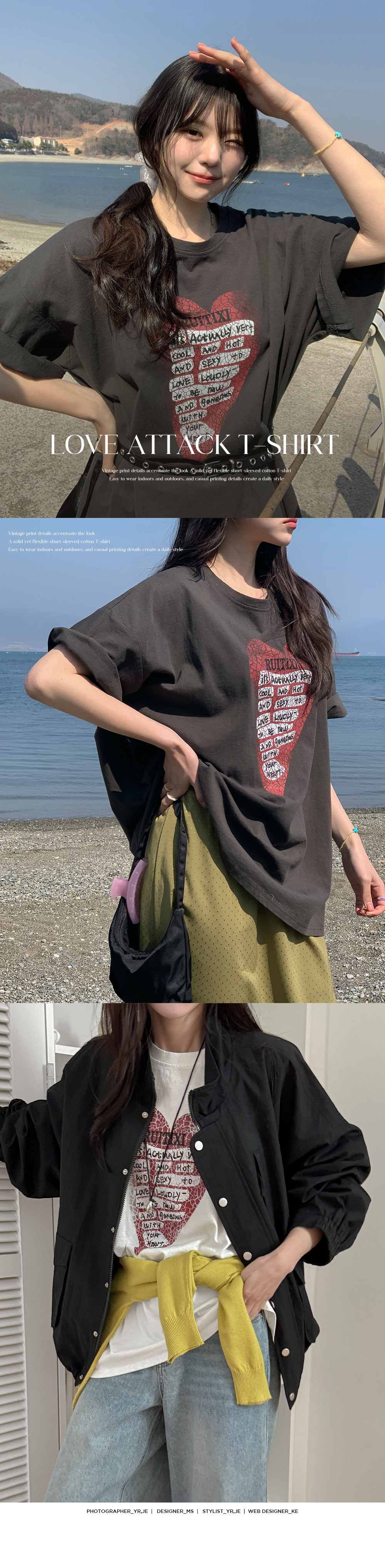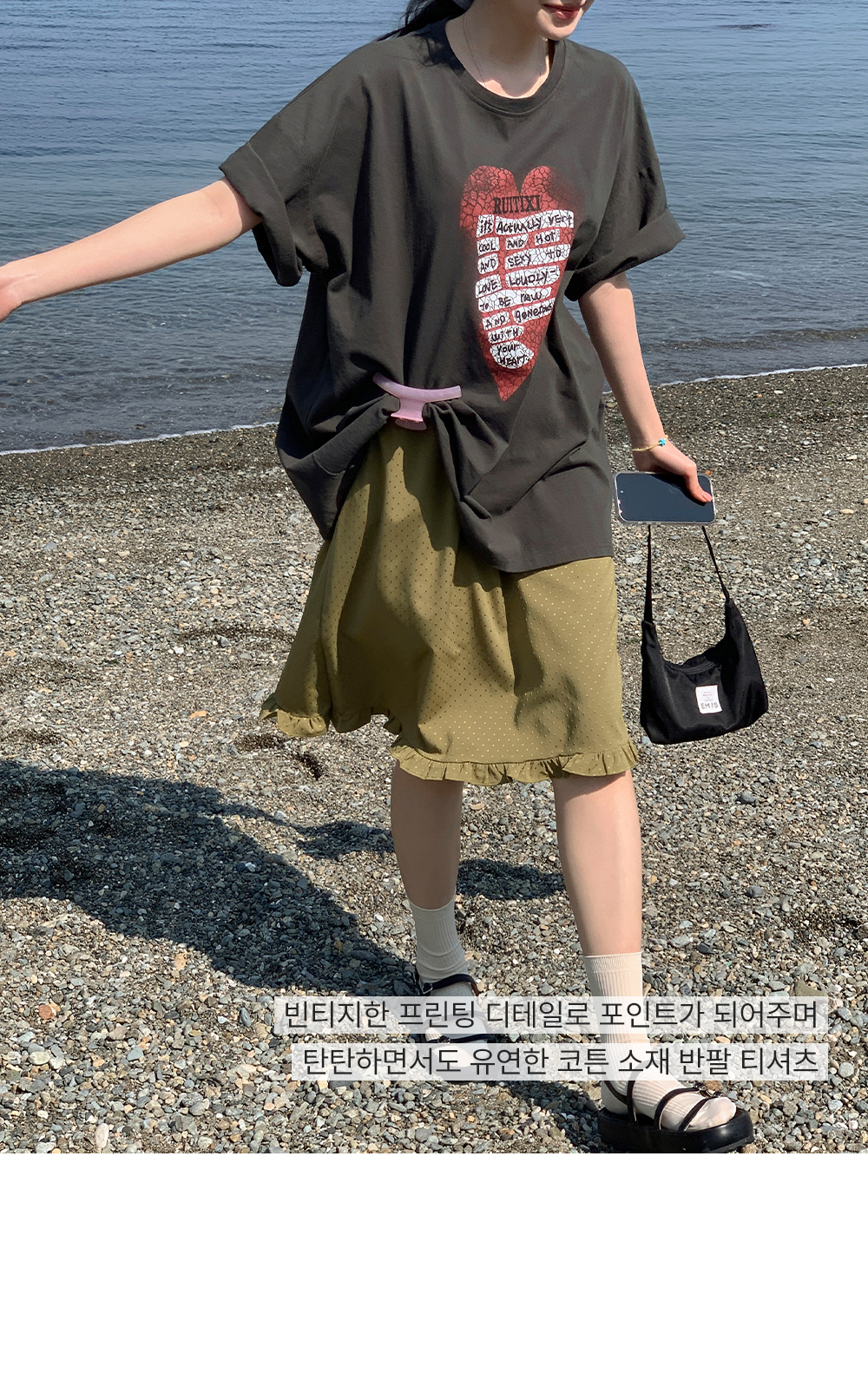 - 빈티지한 프린팅 디테일의 반팔 티셔츠