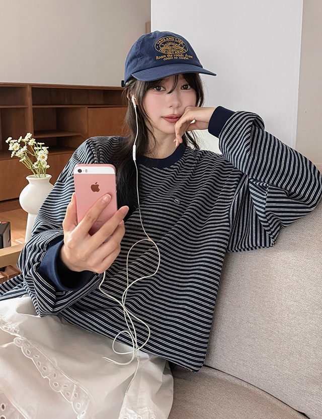 카트리 루즈핏 스트라이프 맨투맨 86601