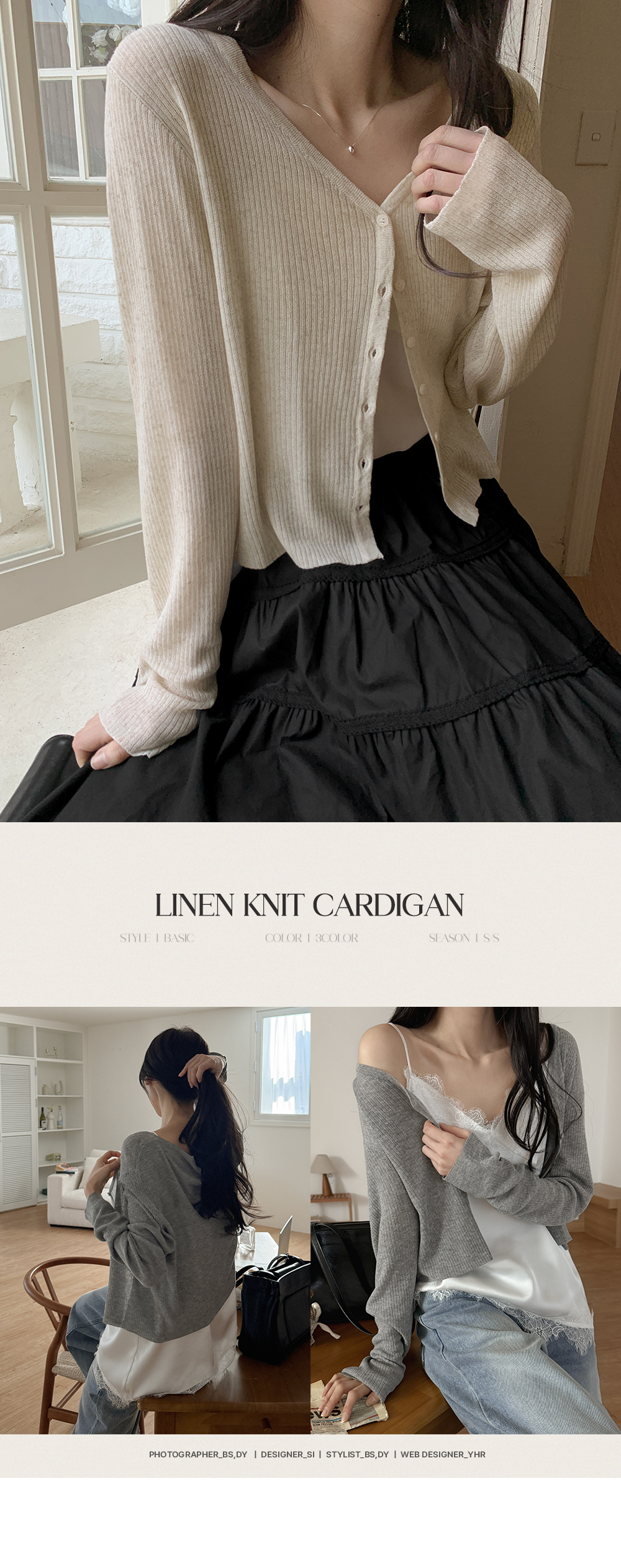린넨과 라이오셀 혼방 소재로 제작된 니트 가디건이에요.