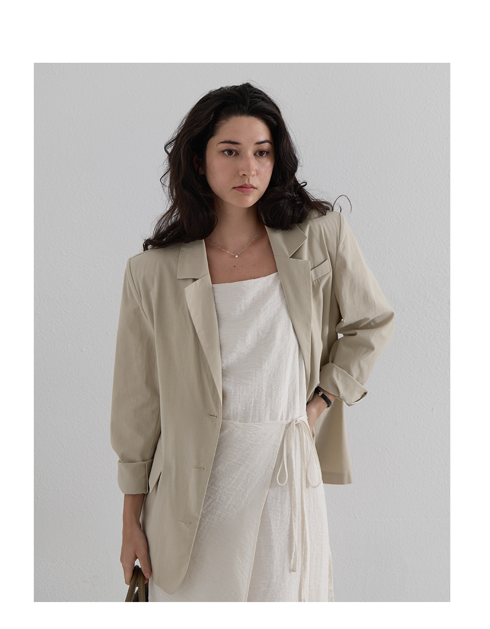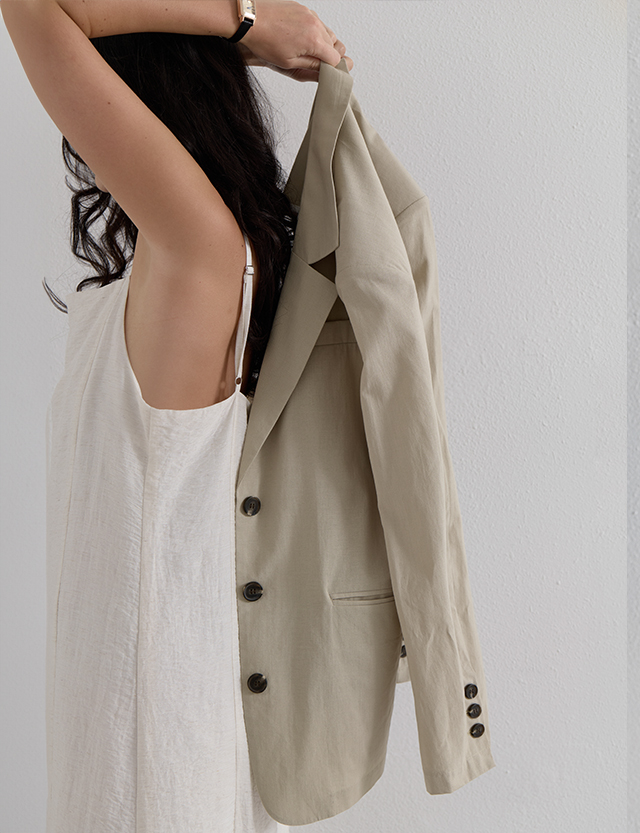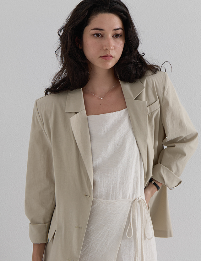 · 여름 시즌에도 부담 없이 걸칠 수 있는 린넨라이크 홀겹 자켓