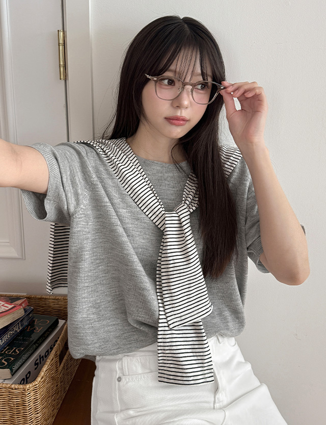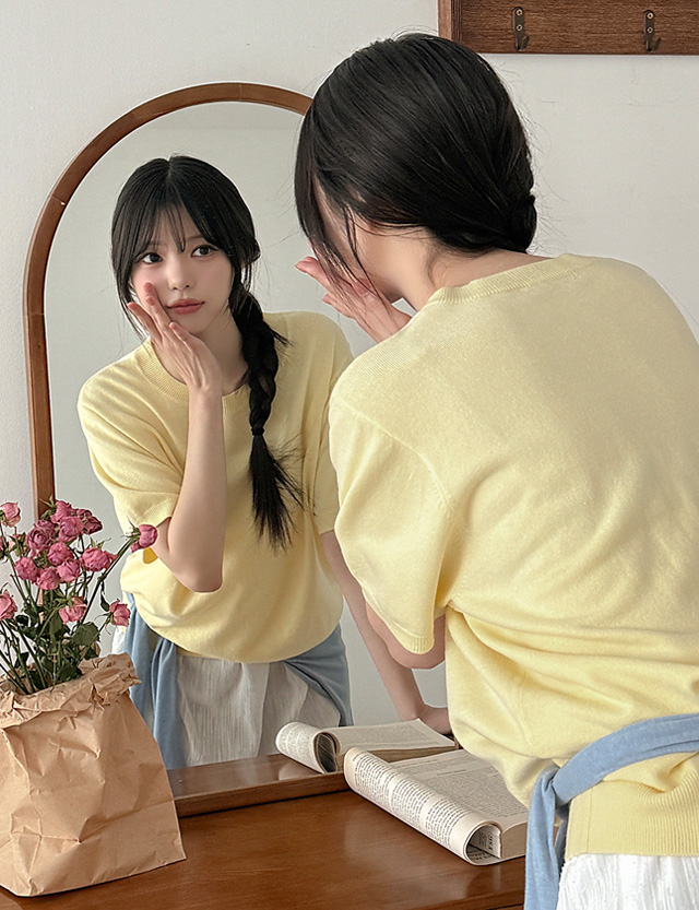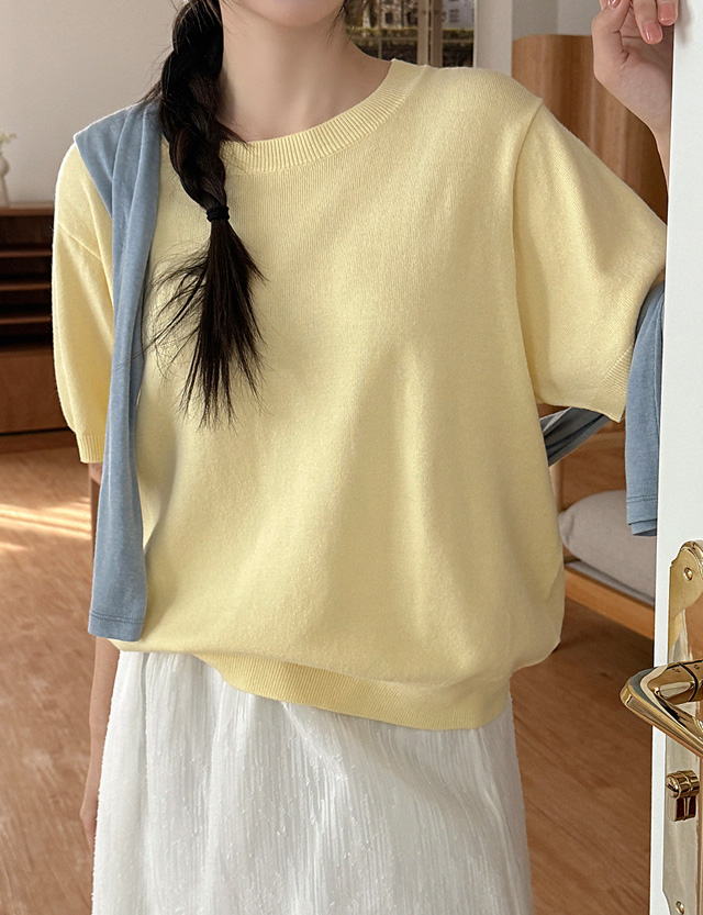 델리앙 루즈핏 반팔 라운드넥 니트 86899