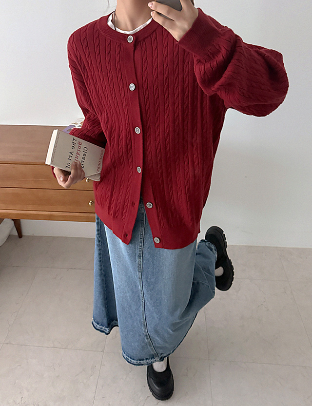 브리오스 꽈배기 라운드 루즈핏 가디건 86416