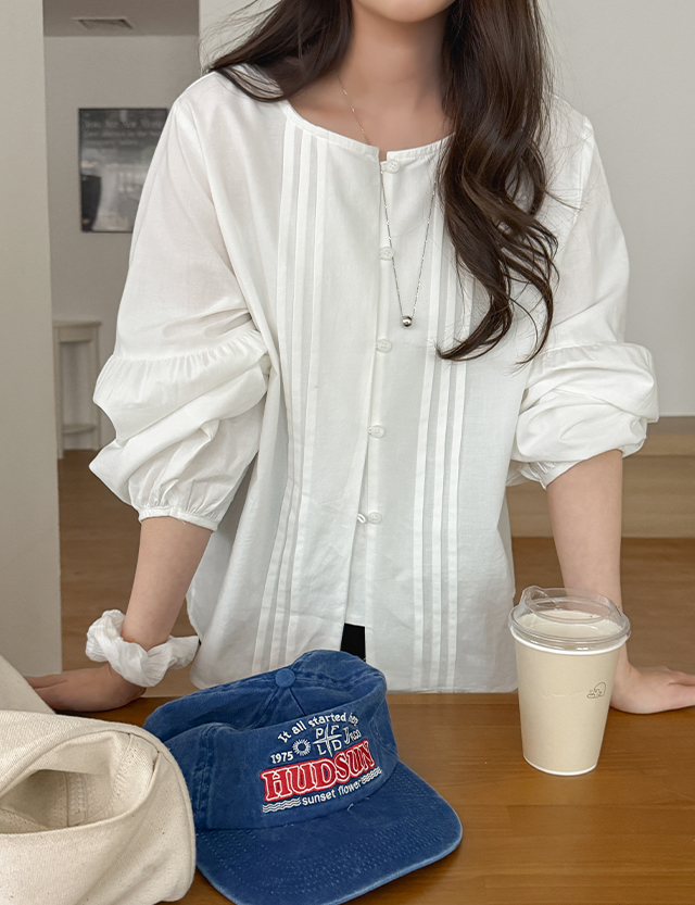 에브린 러블리 핀턱 퍼프 블라우스 86670
