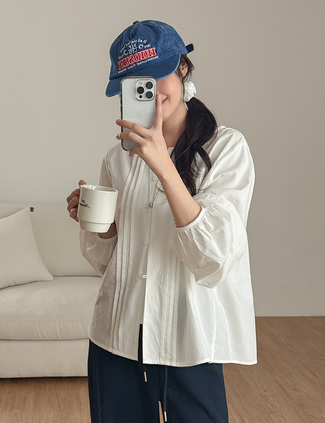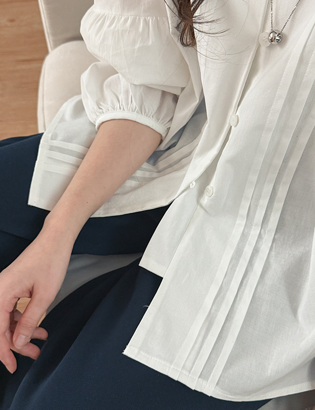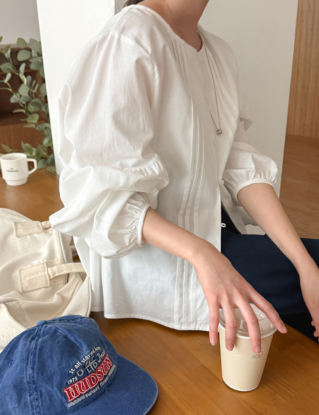 - 단정하면서도 여성스러운 무드의 핀턱 디테일