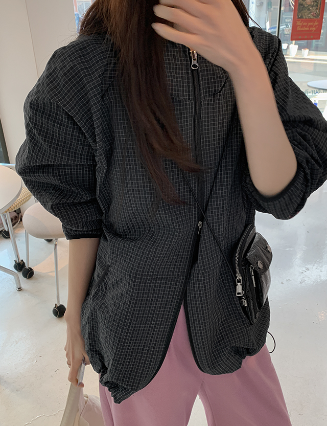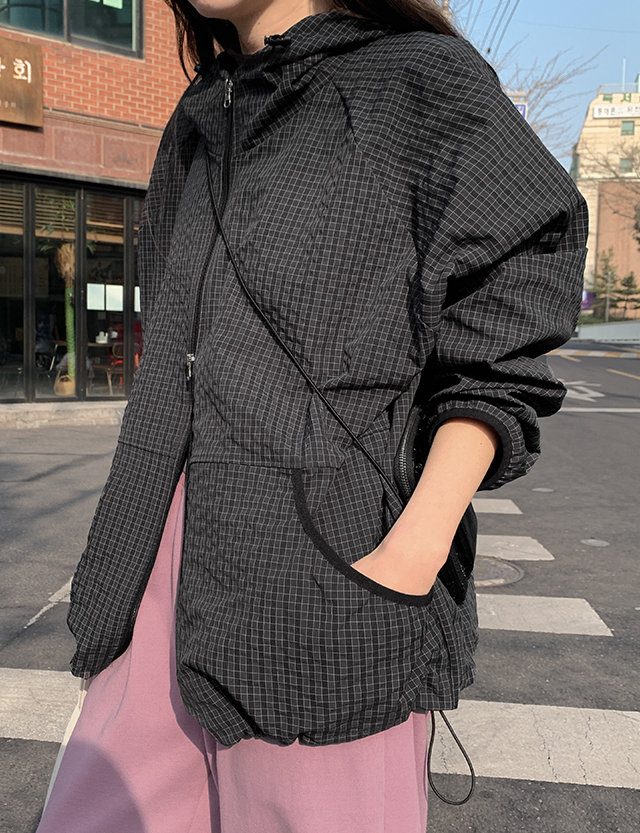 라이닝 체크패턴 투웨이 후드 윈드 점퍼 86804