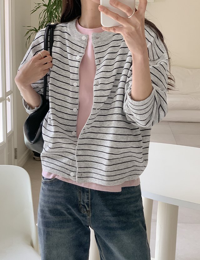 데이뮨 스트라이프 니트 가디건 86832