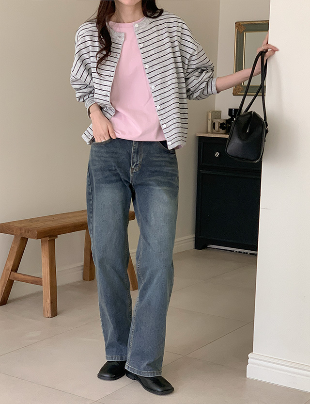 - 스트라이프 패턴과 라운드 넥으로