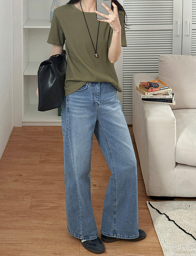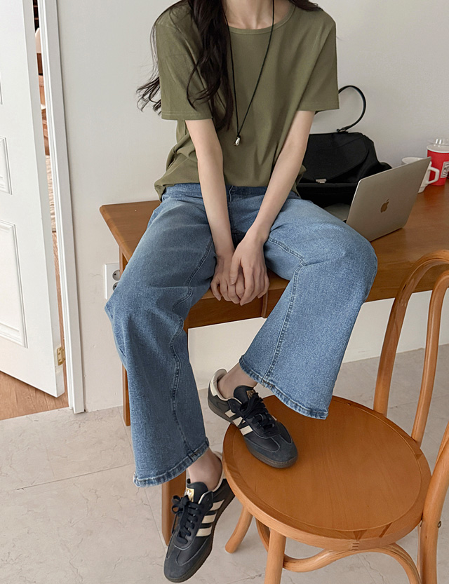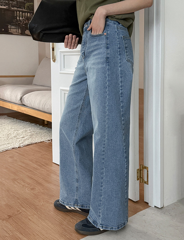 가니트 속밴딩 스판 절개 데님 팬츠 87067