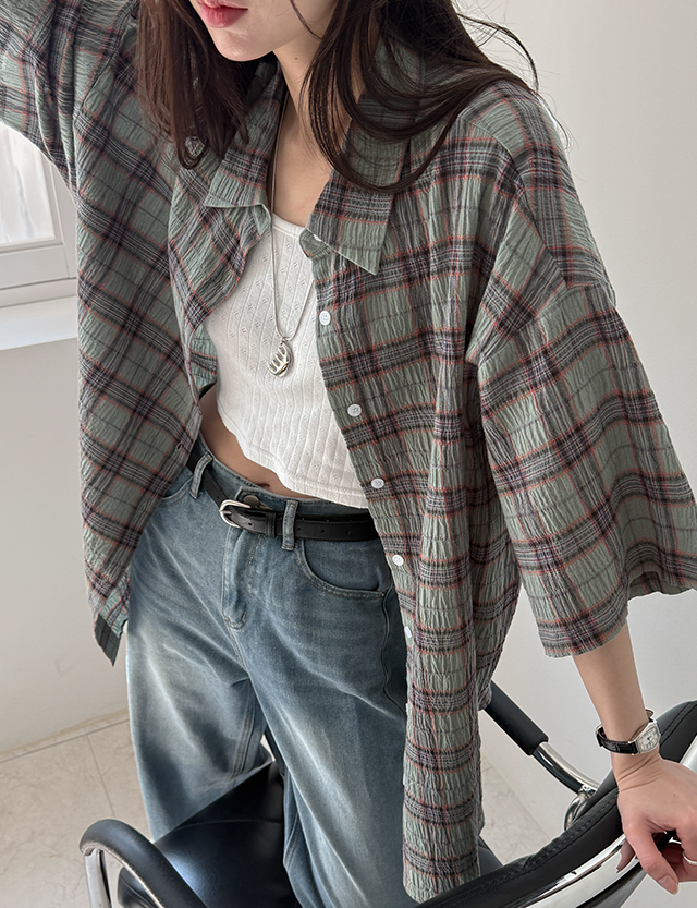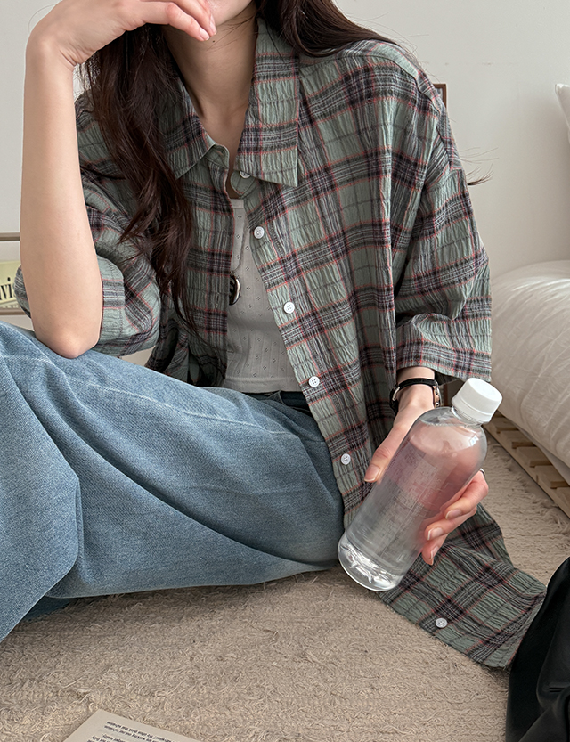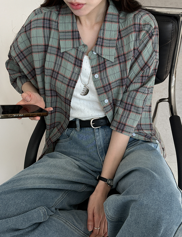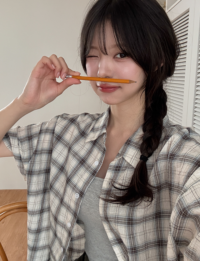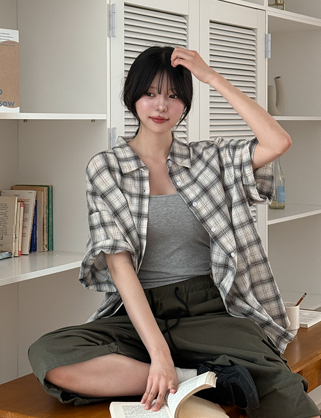 크레오 리얼루즈핏 체크 반팔 셔츠 87462