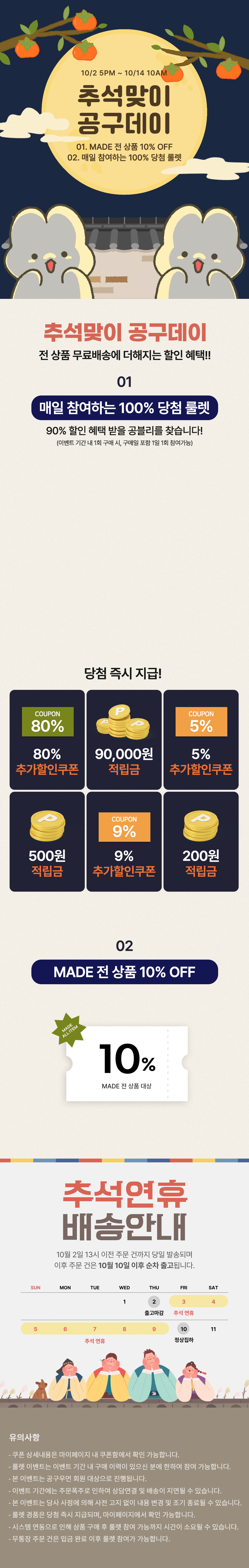 추석맞이 공구데이! MADE 10% + 100% 당첨 룰렛 이벤트
