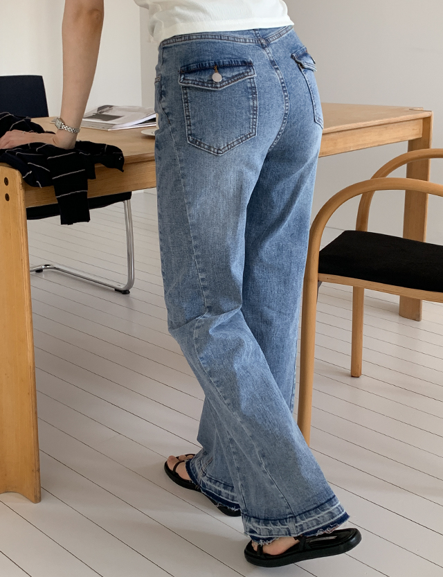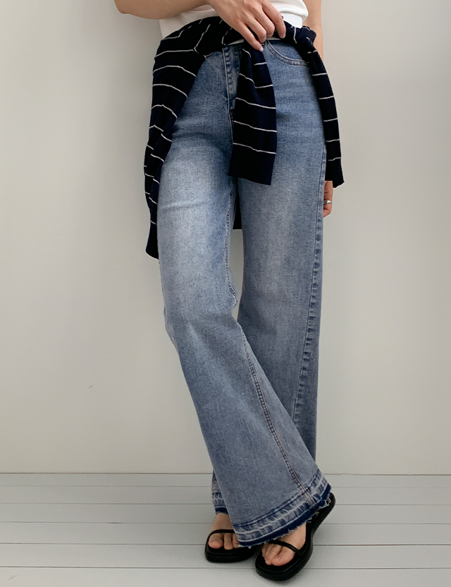 [2가지기장] 쉐입 밑단 포인트 속밴딩 데님 부츠컷 팬츠 87016