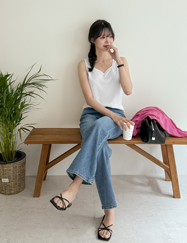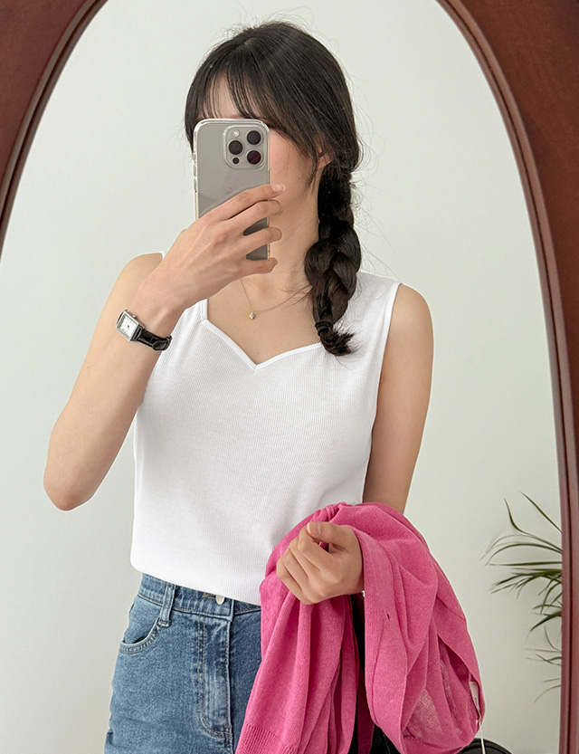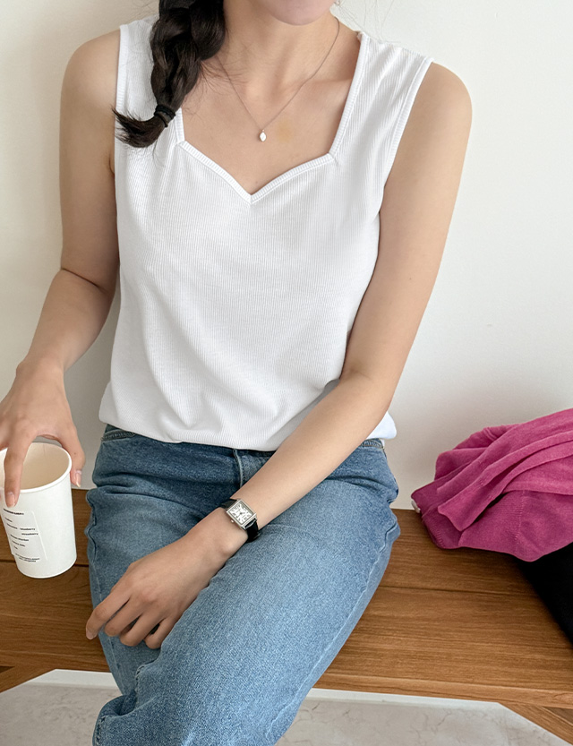 하트 스퀘어넥으로 넥라인이 예쁜 스퀘어넥 나시