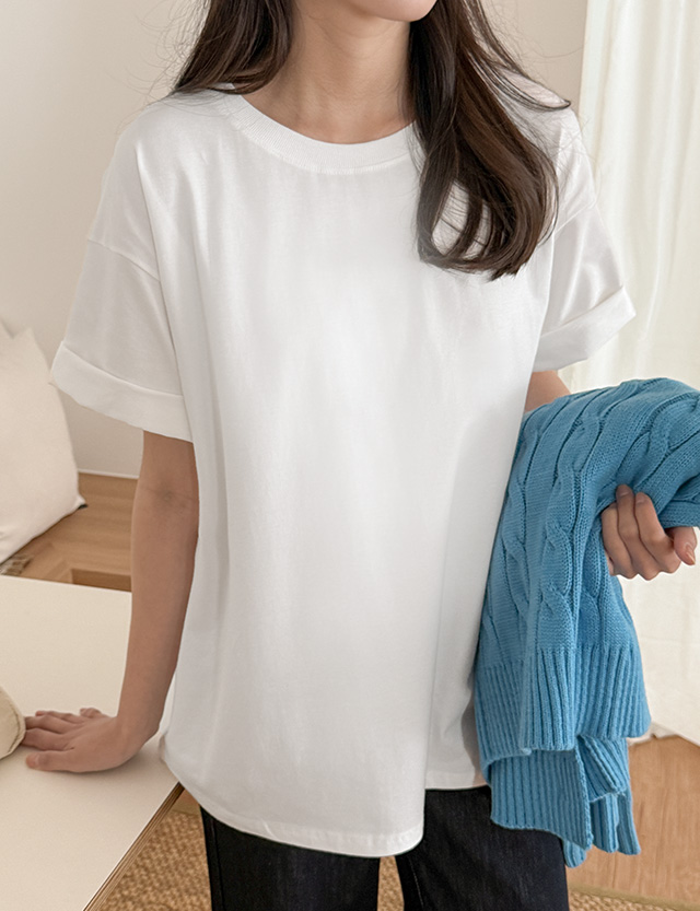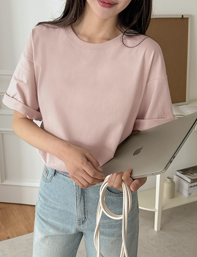 촉촉하고 소프트한 라운드넥 반팔 티셔츠