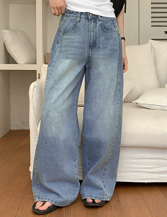 절개 와이드 데님 팬츠