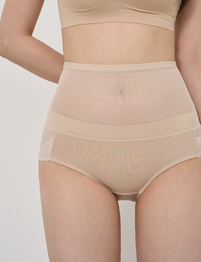 복부를 부드럽게 커버해주고, 허리라인은 매쉬 원단으로 답답하지 않게—