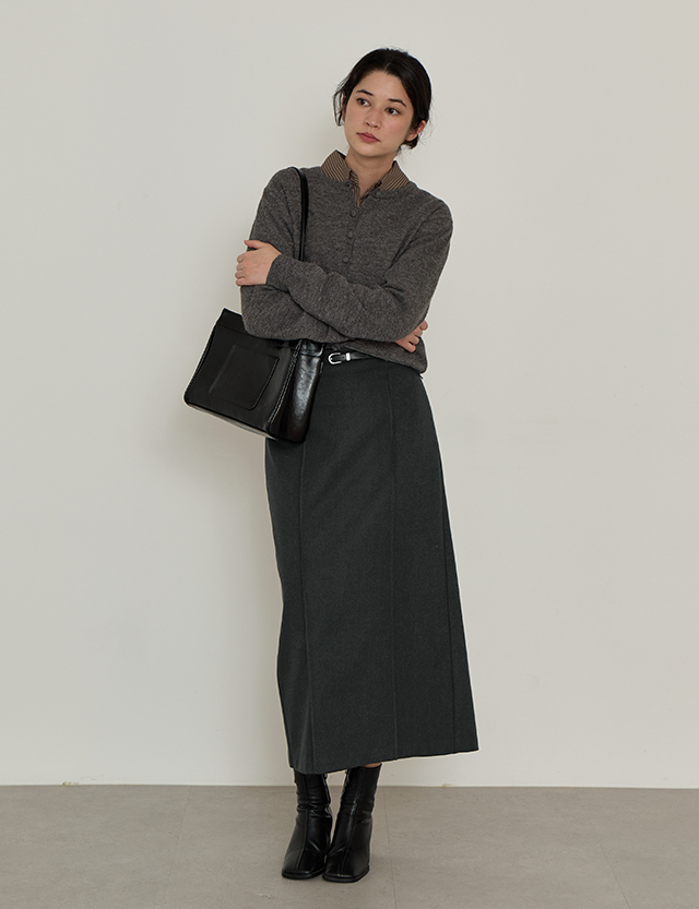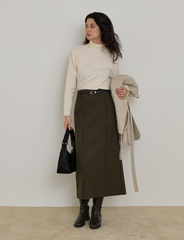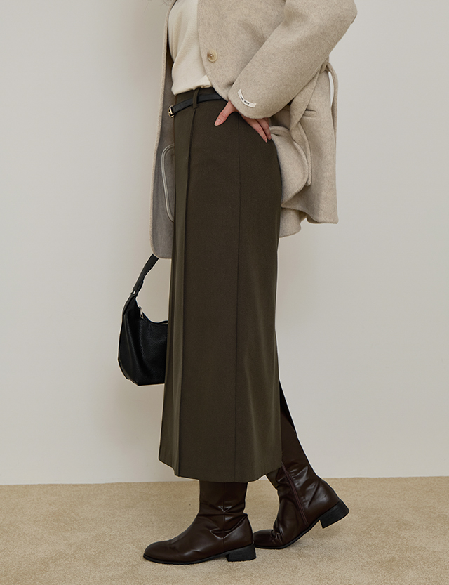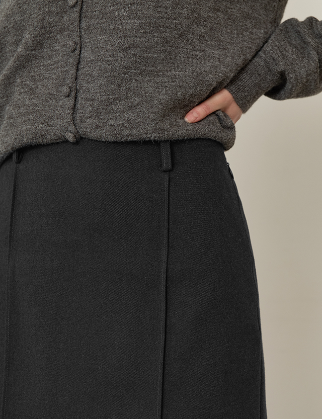 리쉬 뒷밴딩 H라인 모직 스커트 84549