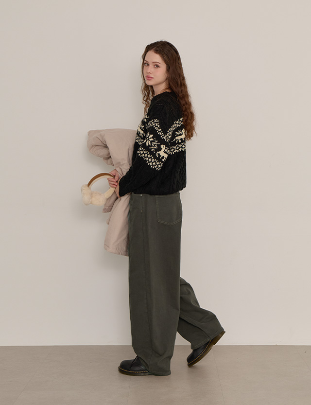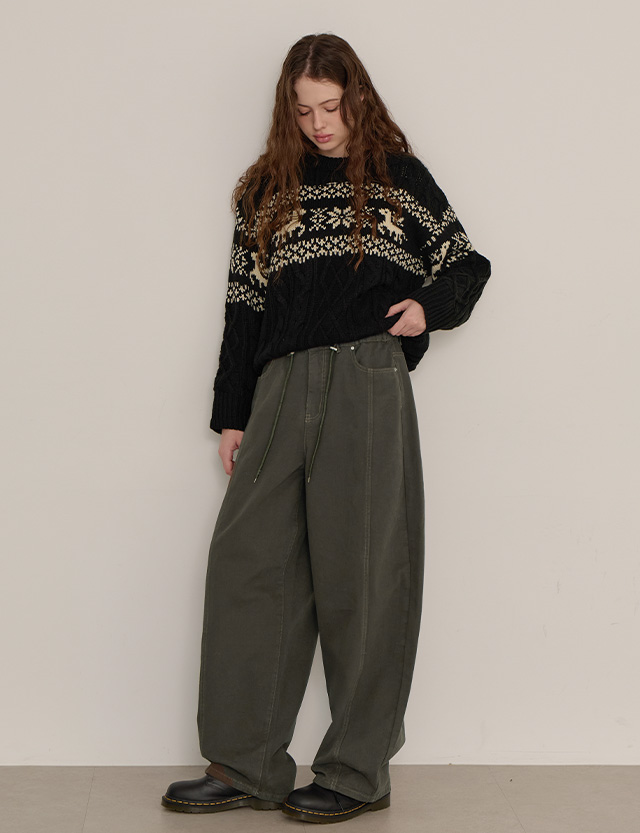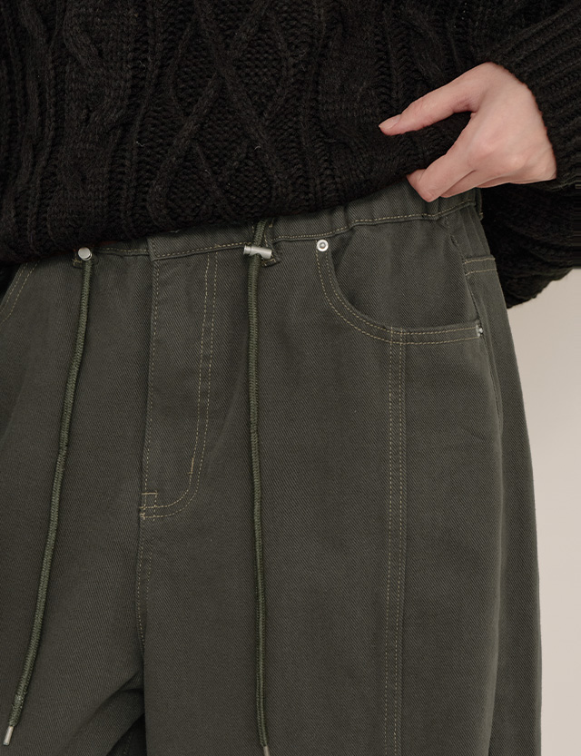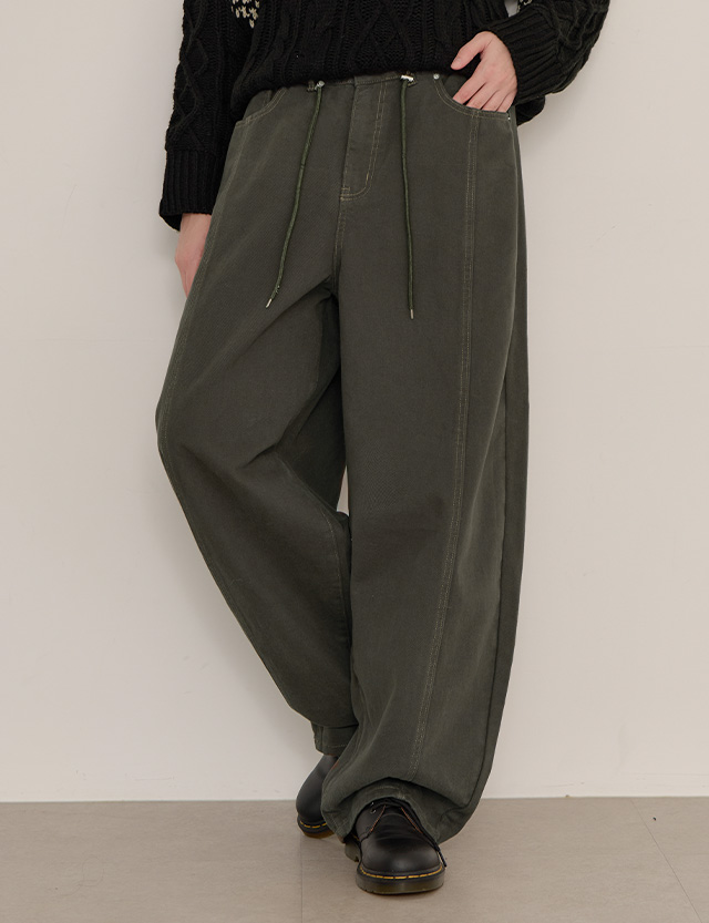 워크 로우 기모 벌룬 커브드 밴딩 팬츠 85009