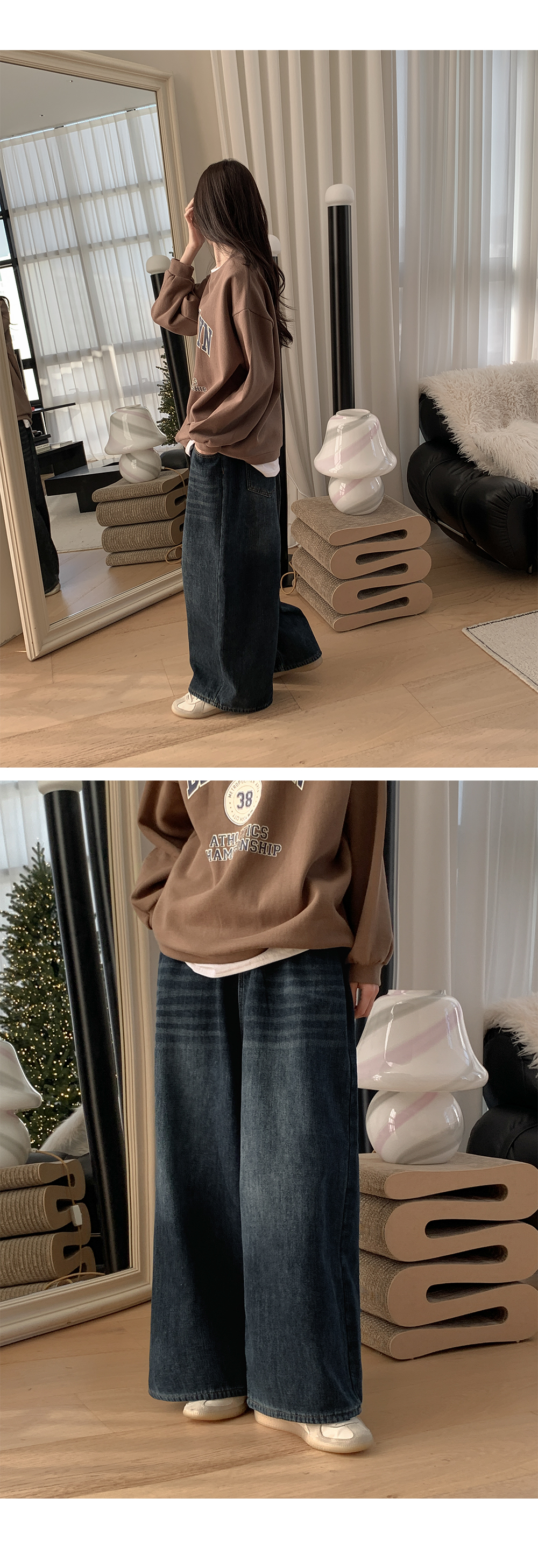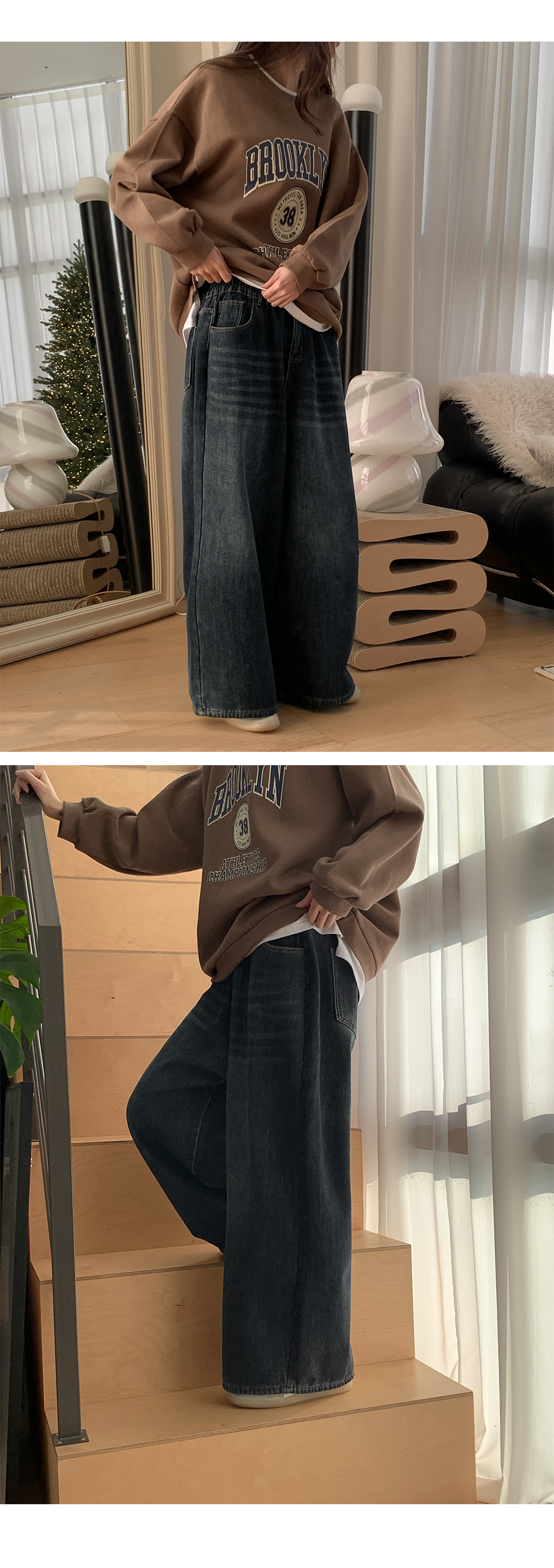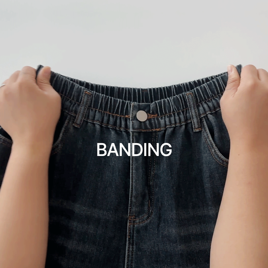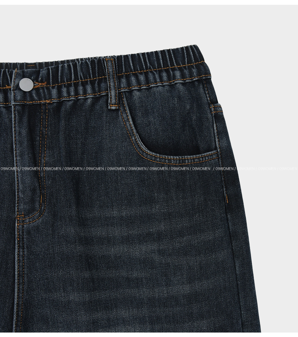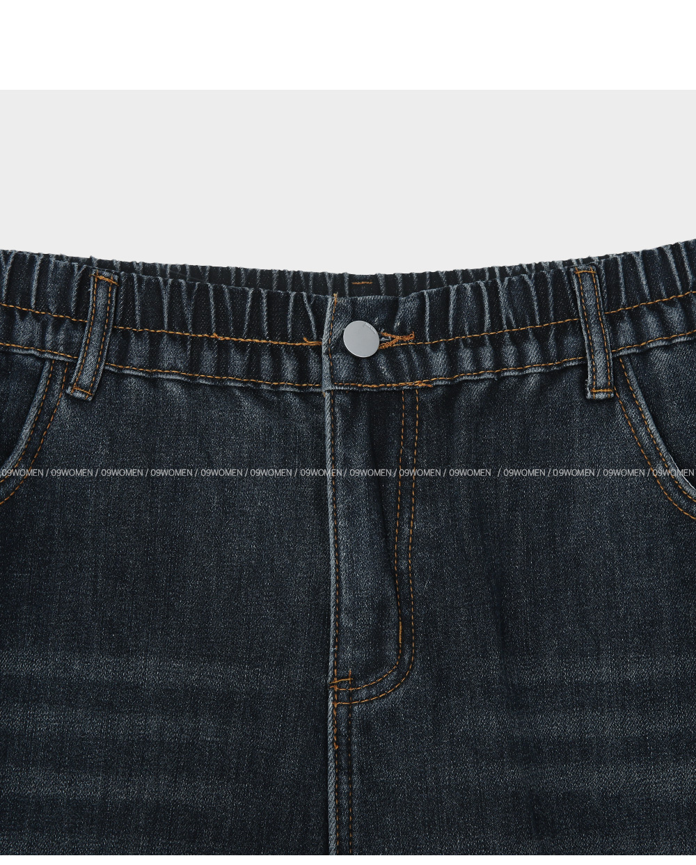 [루빈티] 밍크기모 와이드 데님 밴딩 팬츠,
