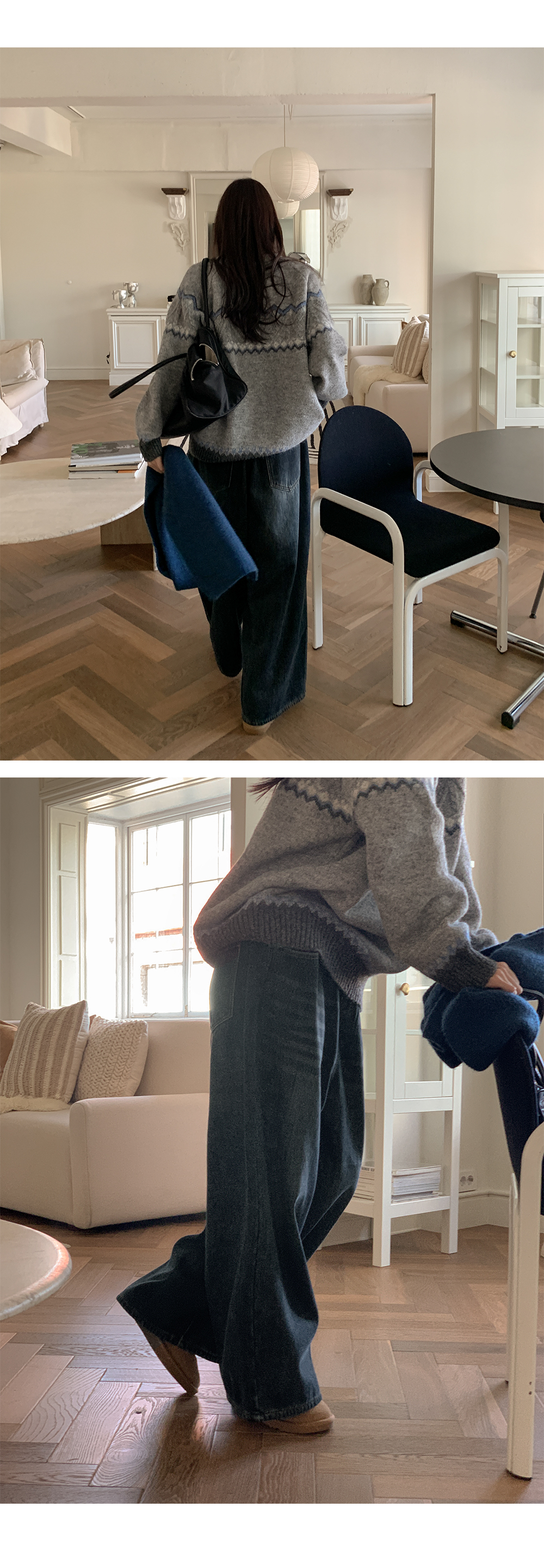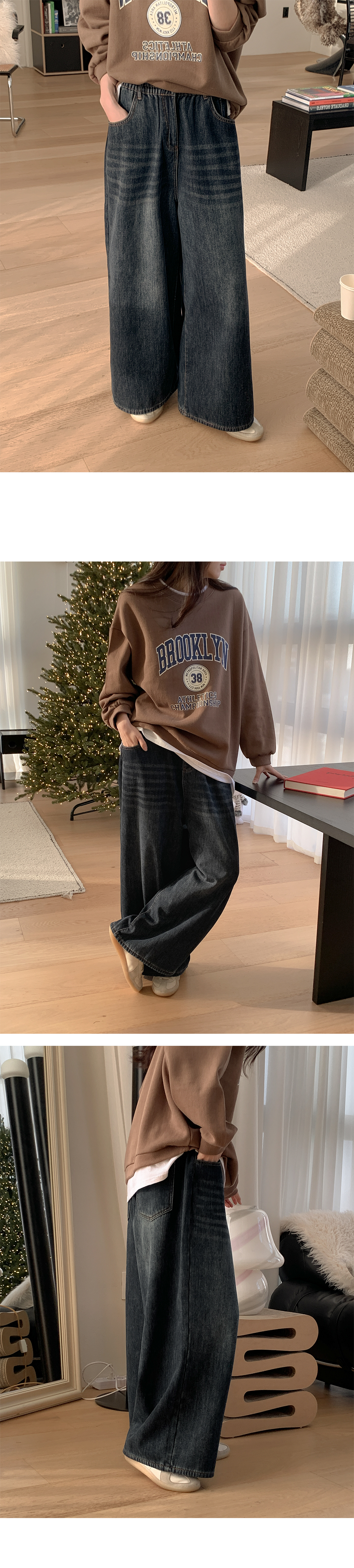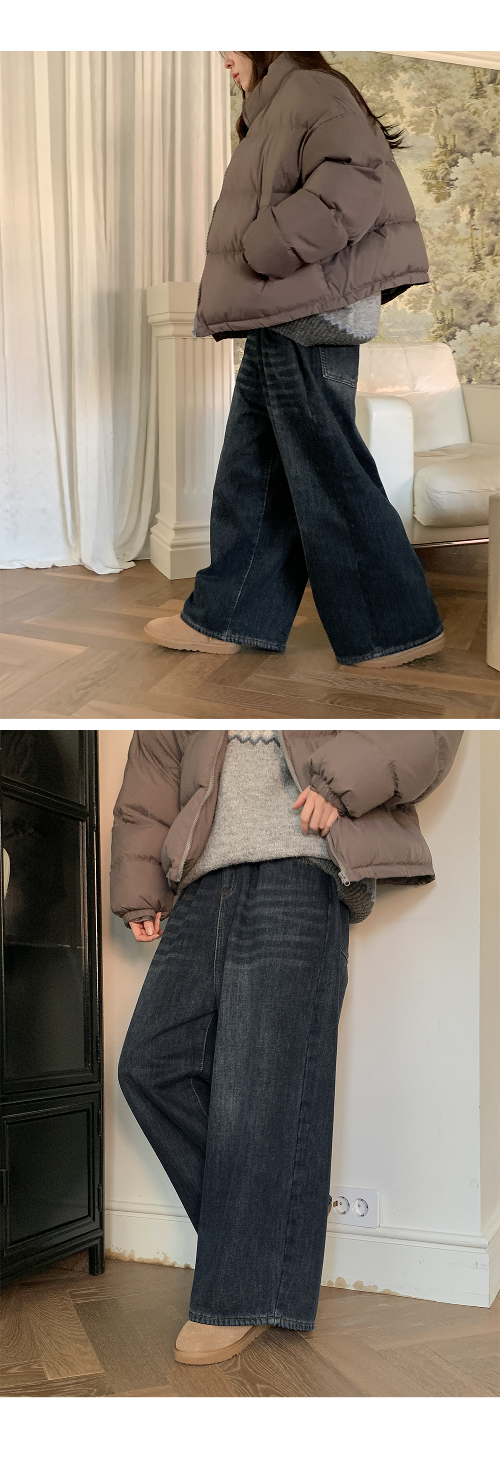 [루빈티] 밍크기모 와이드 데님 밴딩 팬츠