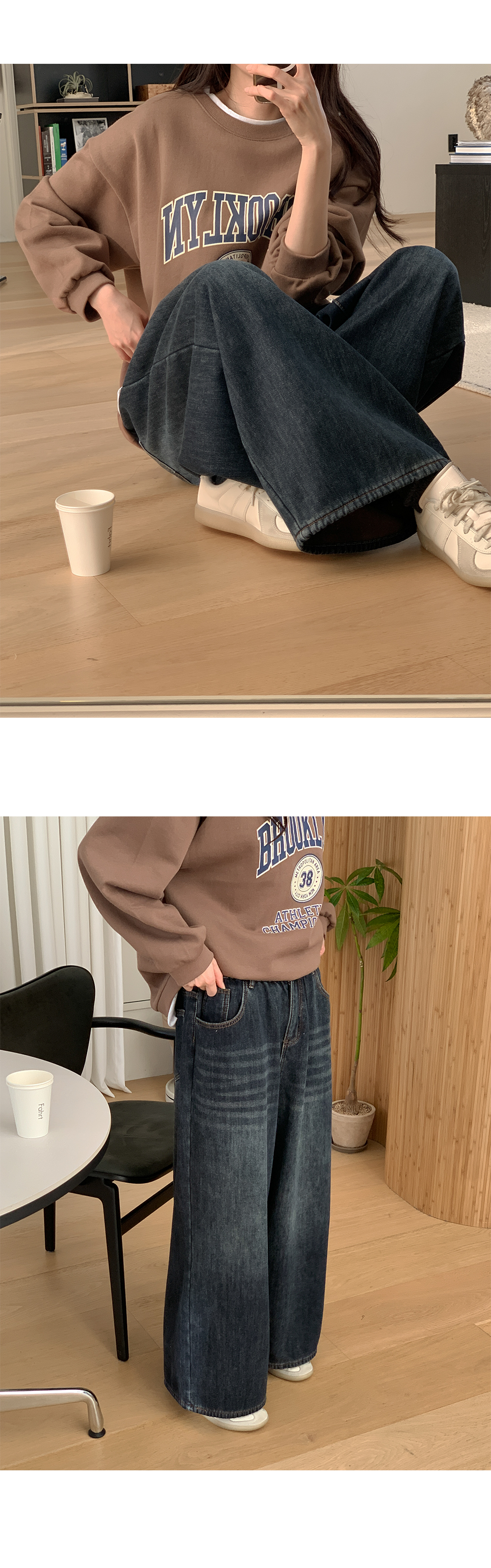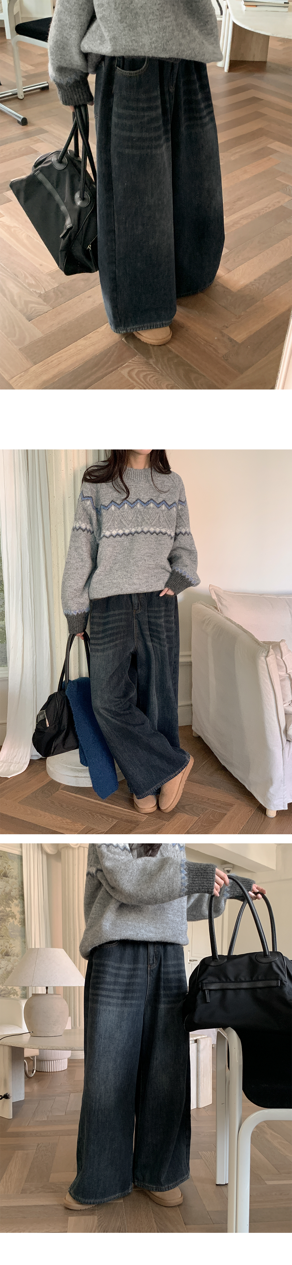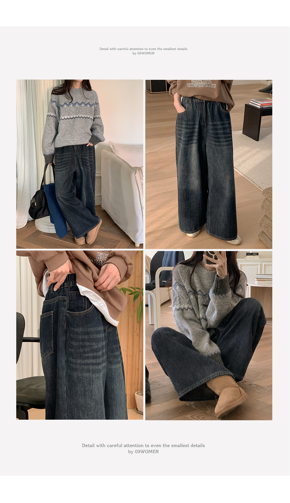[루빈티] 밍크기모 와이드 데님 밴딩 팬츠