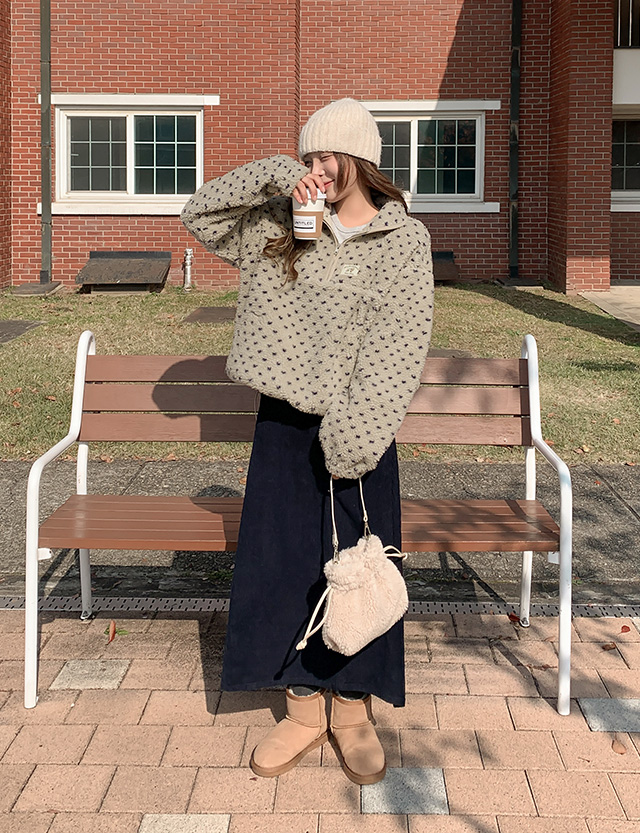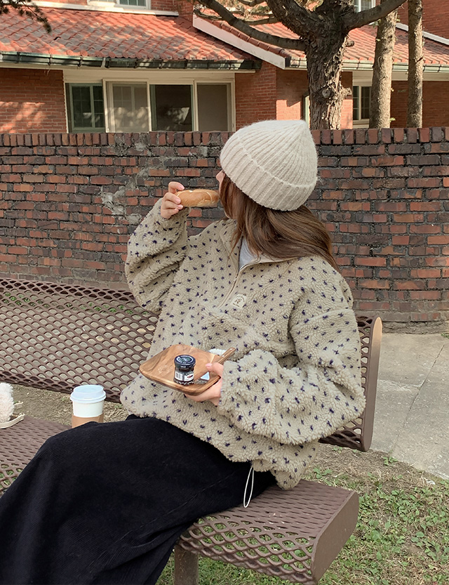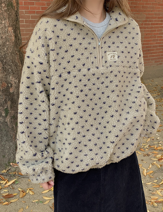 따스한 도트 반집업 플리스