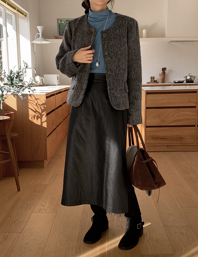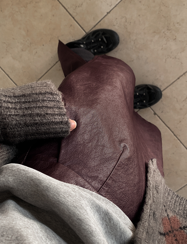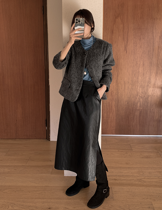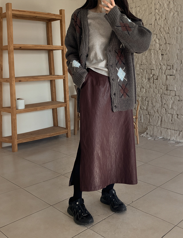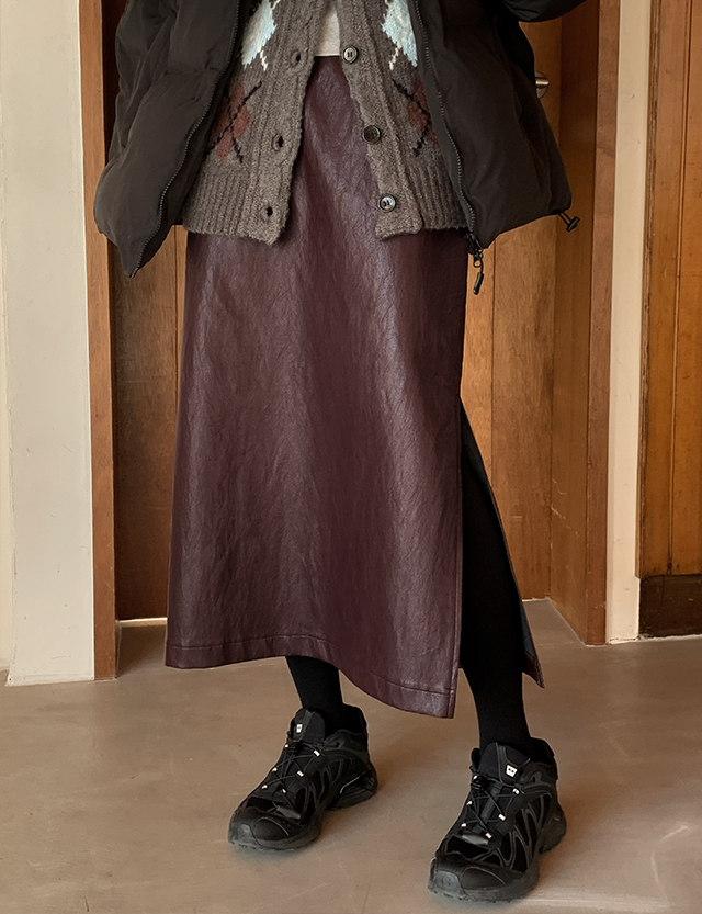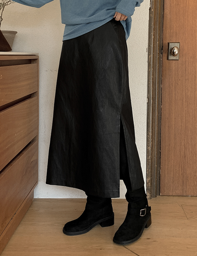 모던빈티지 레더 슬릿 롱 스커트