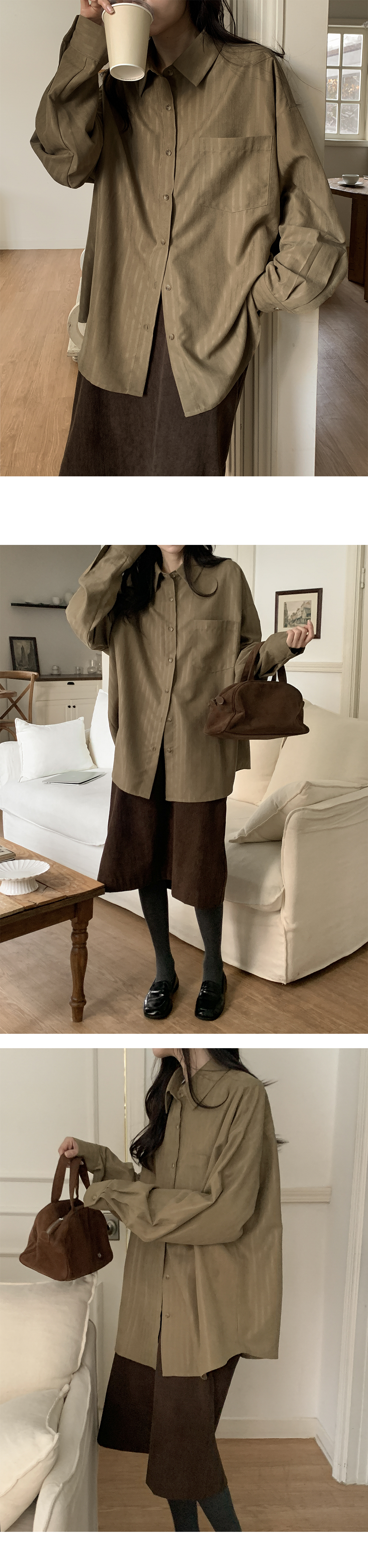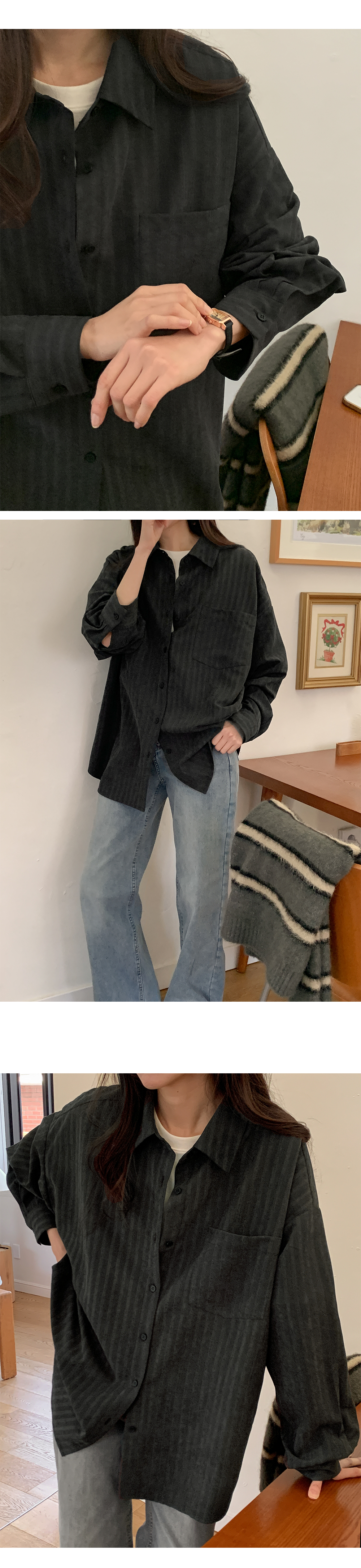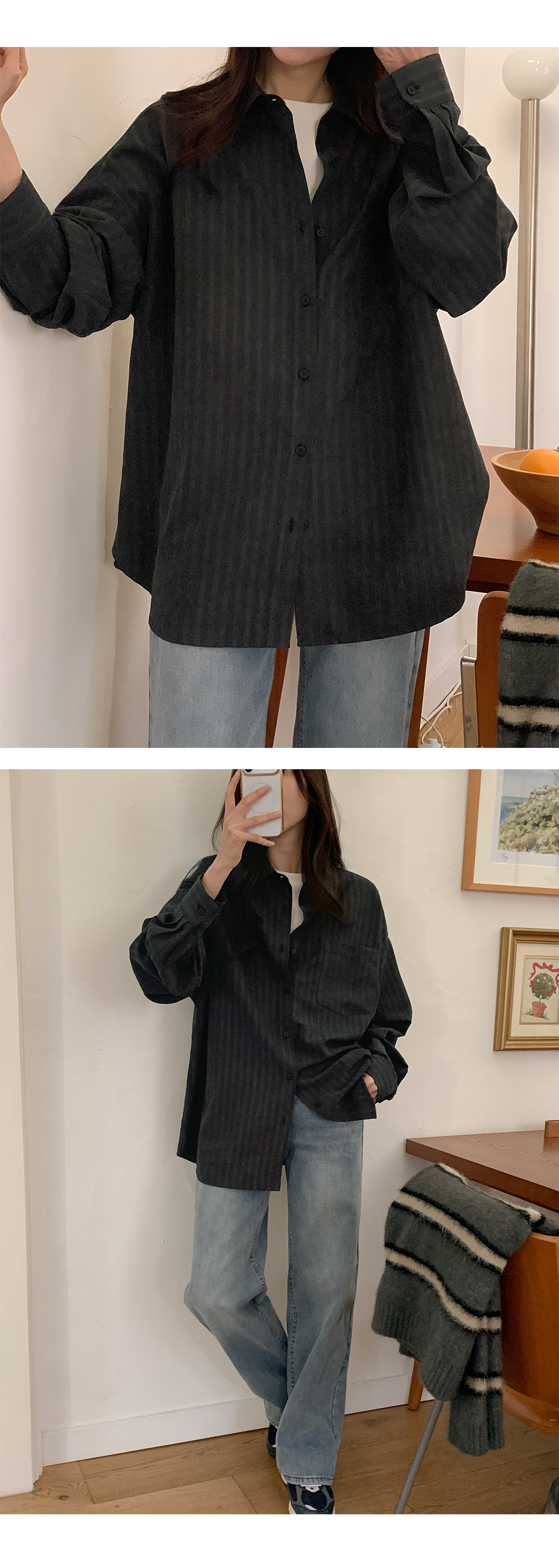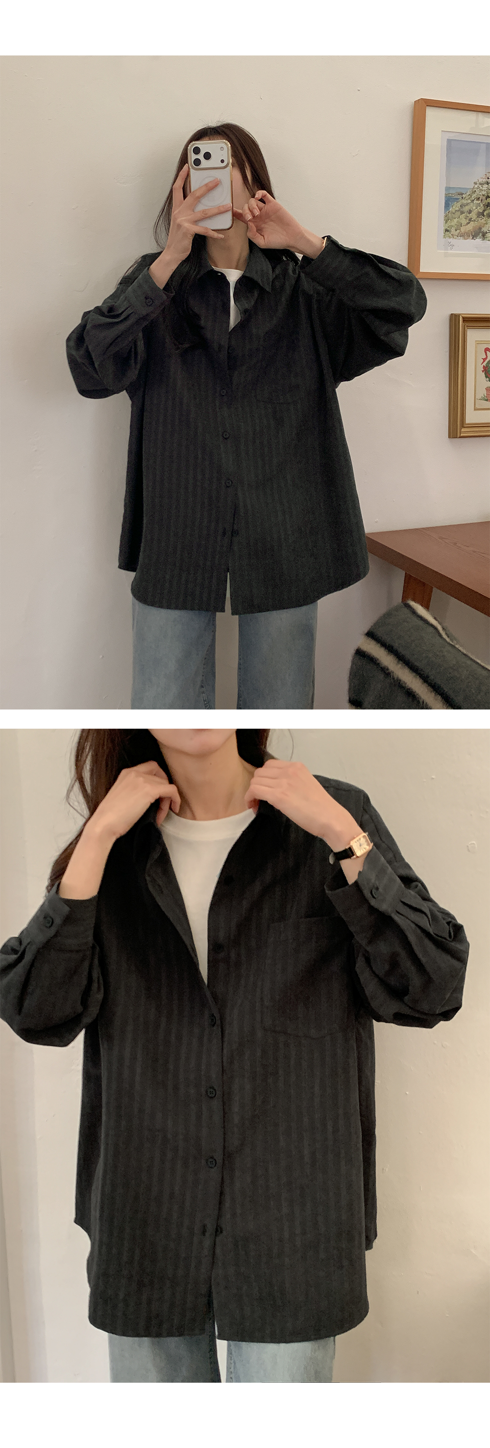 특별하고 매력적인 스웨이드 소재감의 루즈핏 스트라이프 셔츠