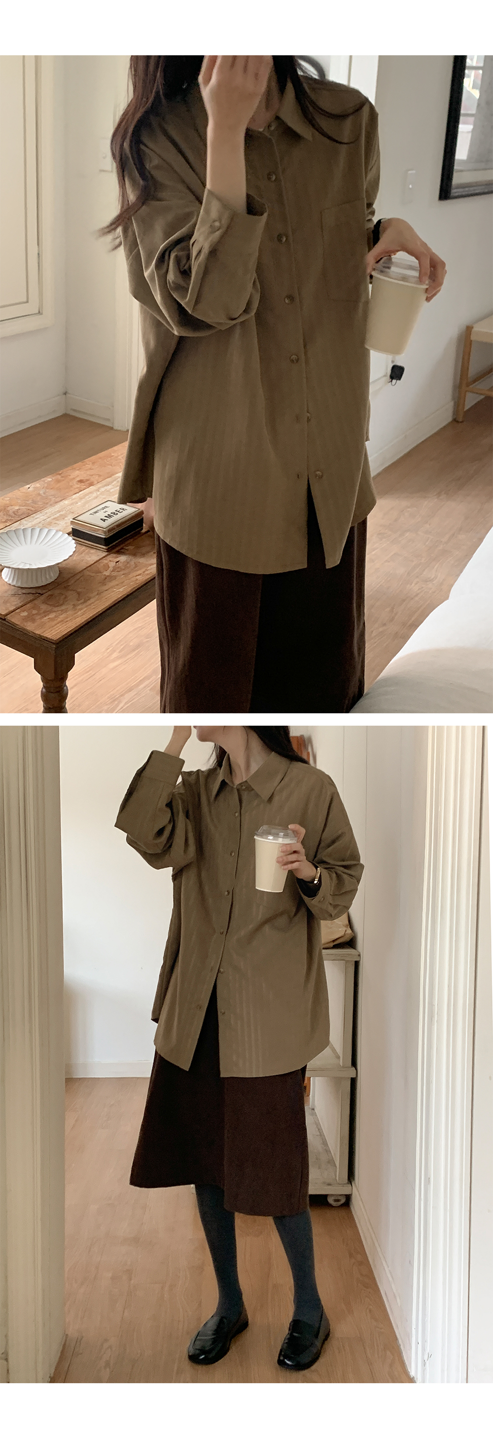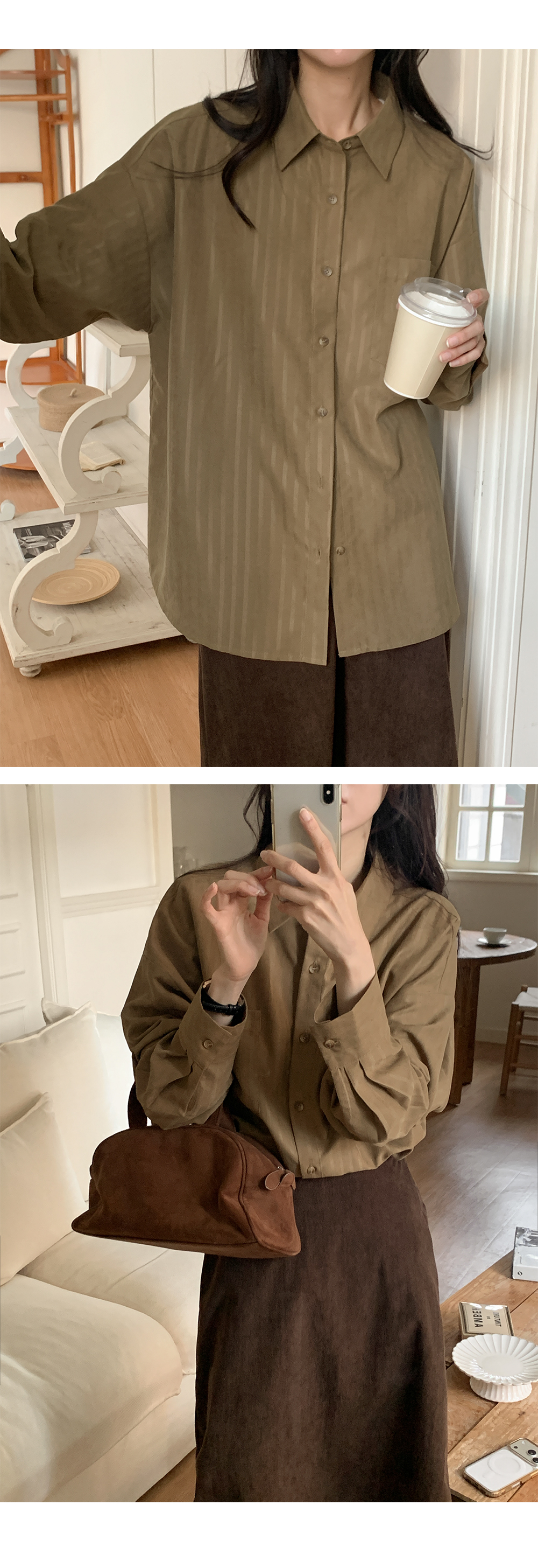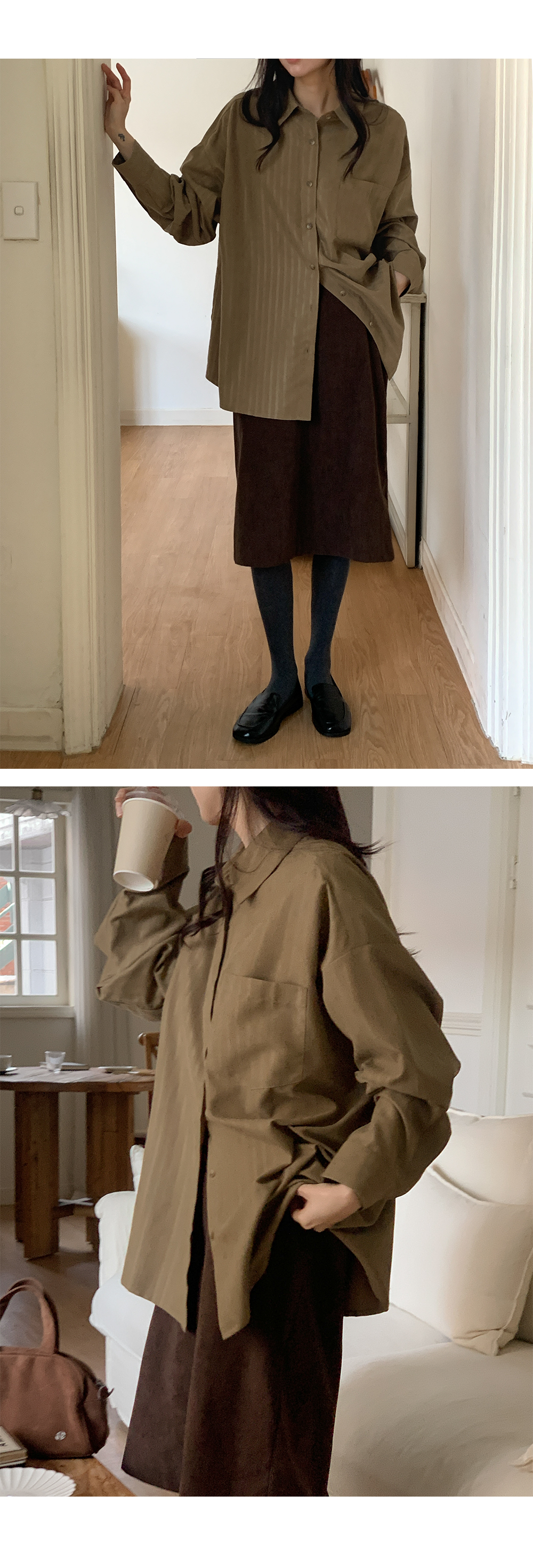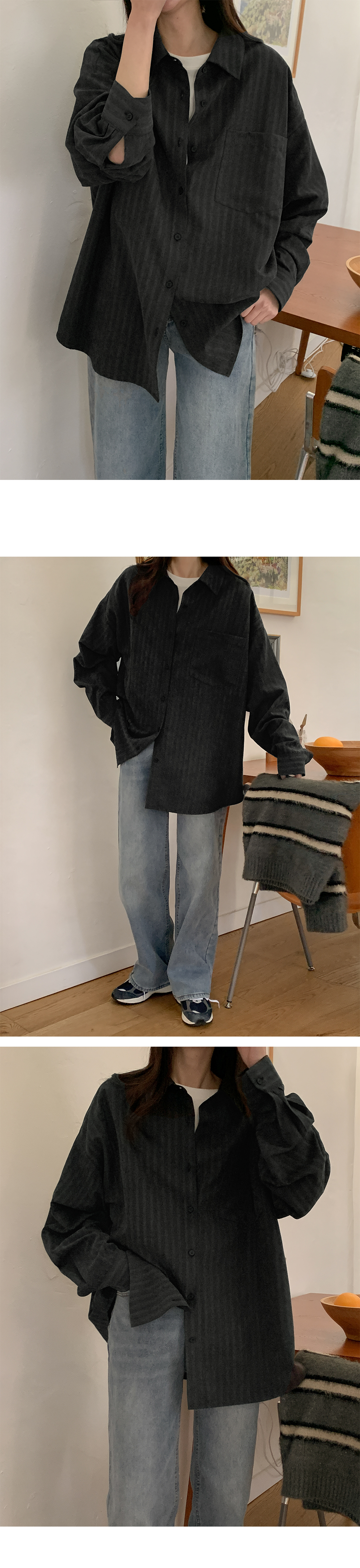 특별하고 매력적인 스웨이드 소재감의 루즈핏 스트라이프 셔츠