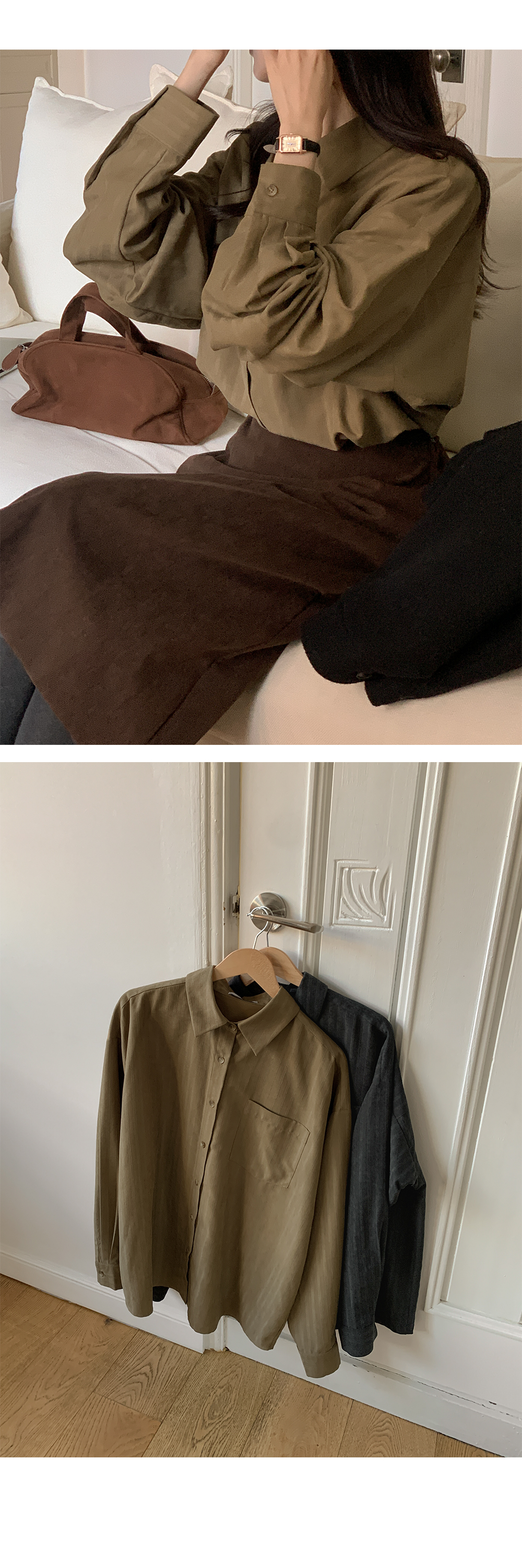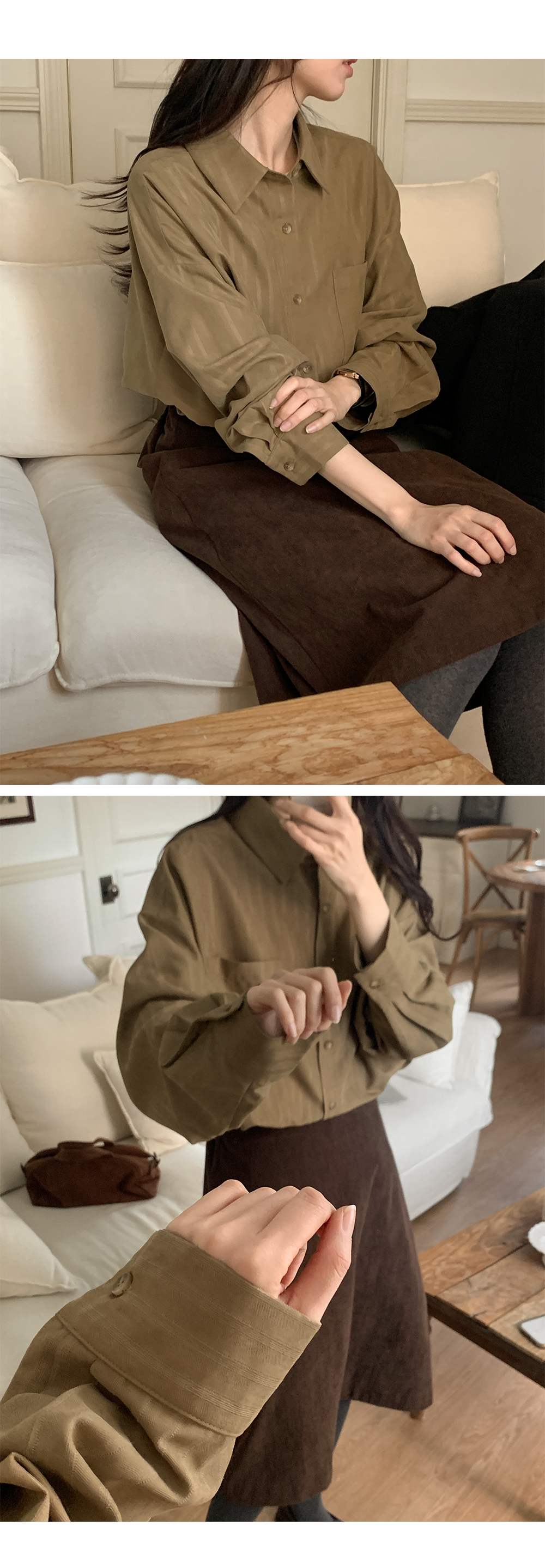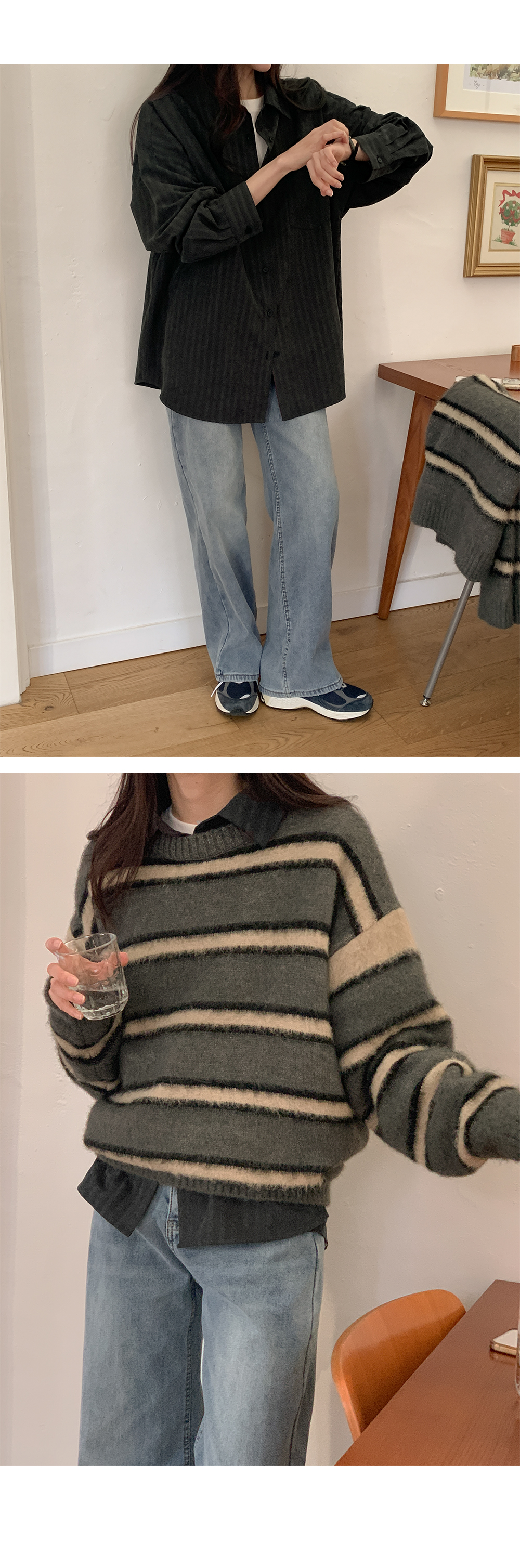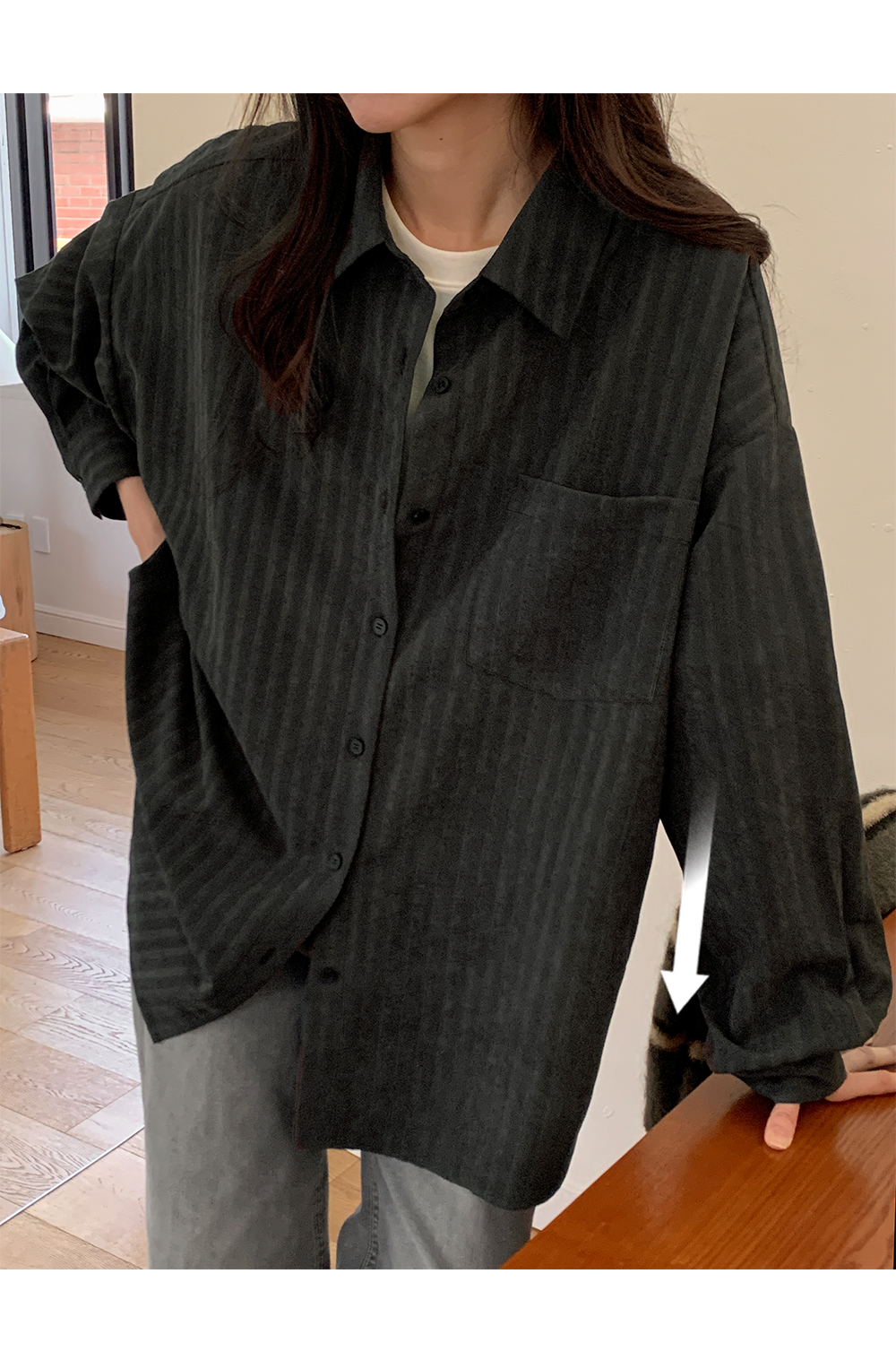 특별하고 매력적인 스웨이드 소재감의 루즈핏 스트라이프 셔츠