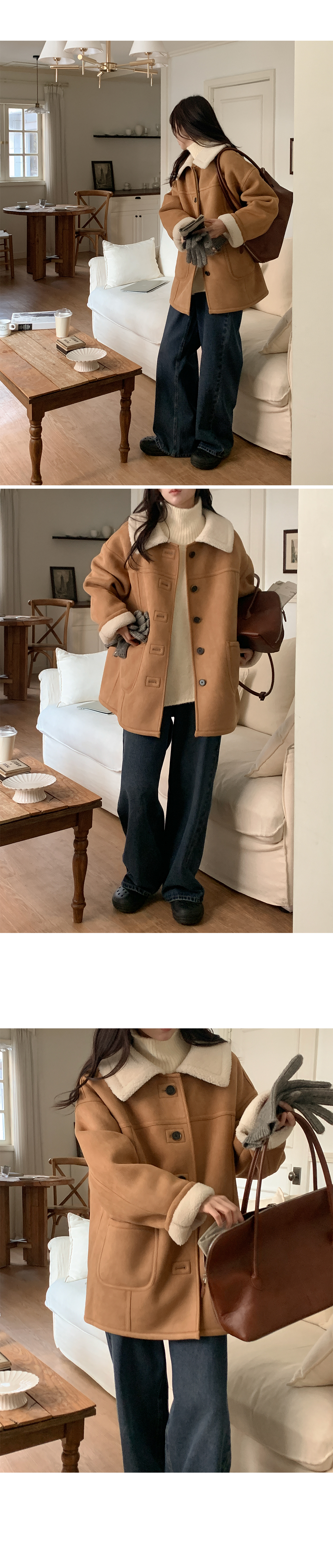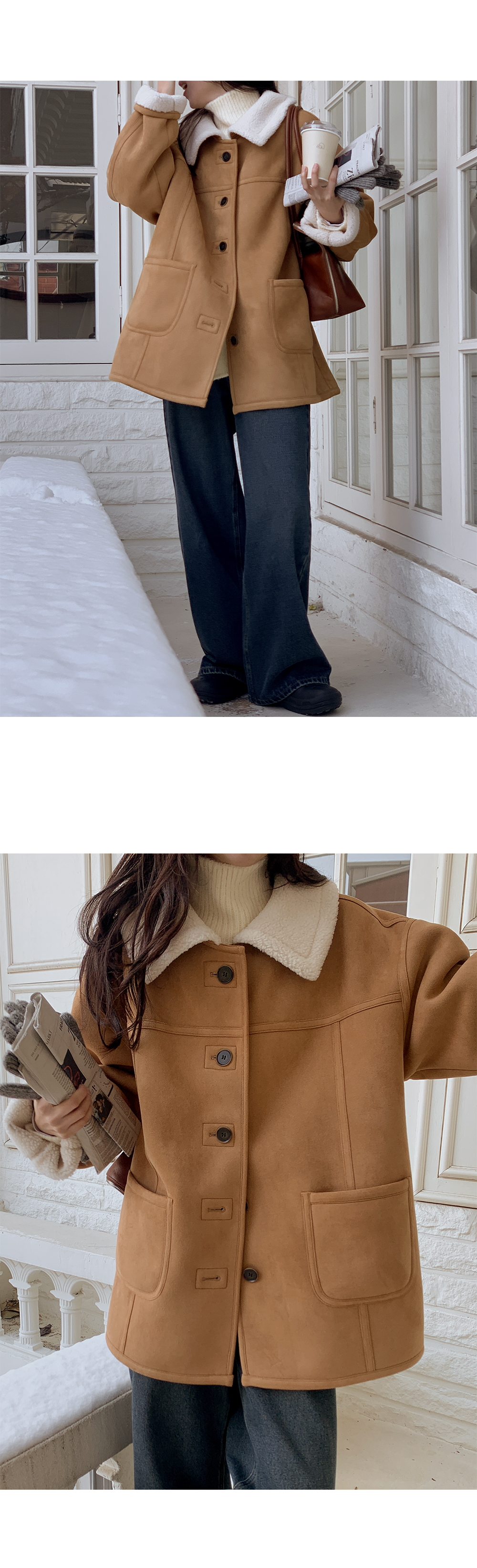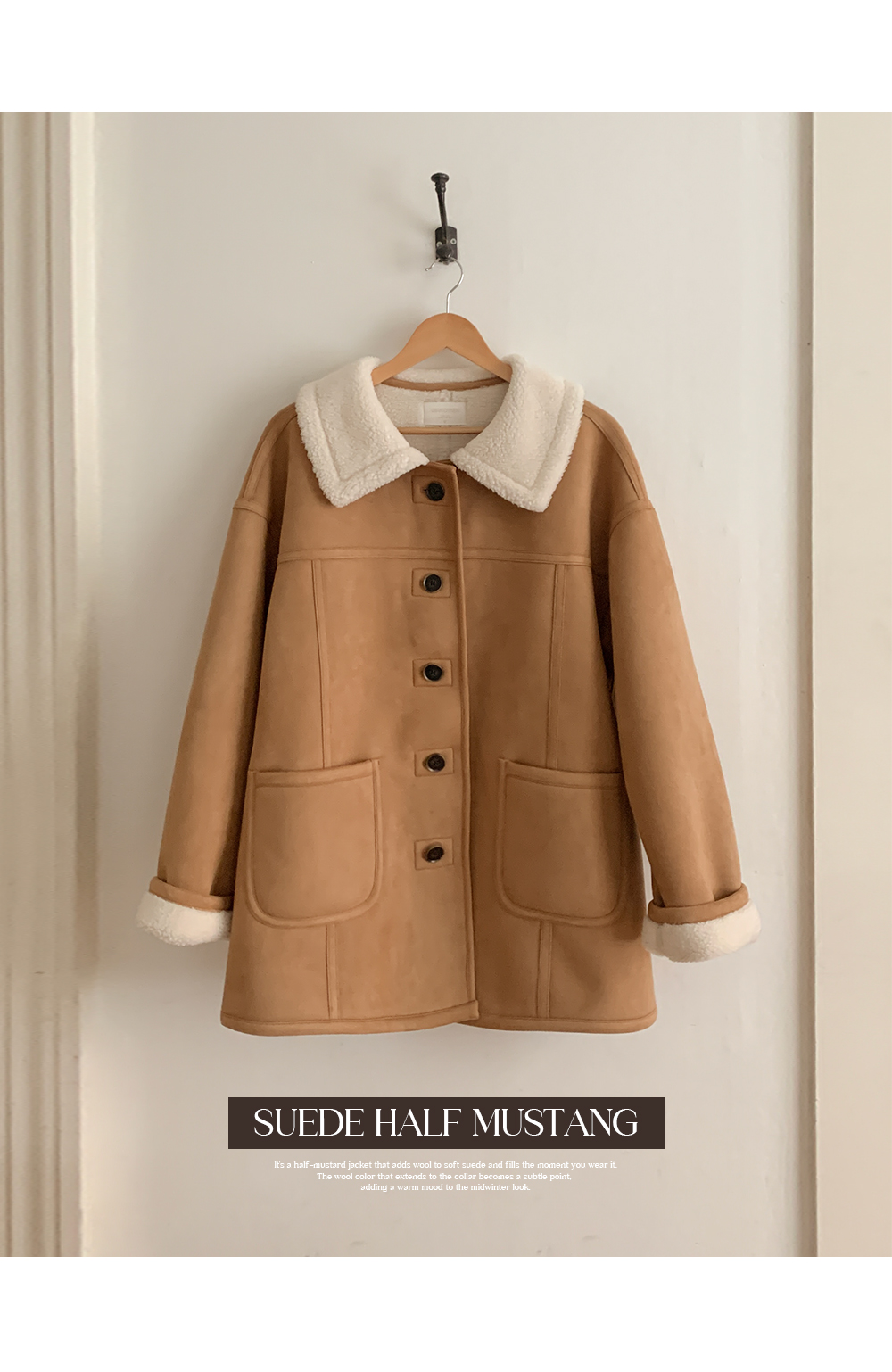 입는 순간 따스함이 채워지는 하프 무스탕 자켓이에요.