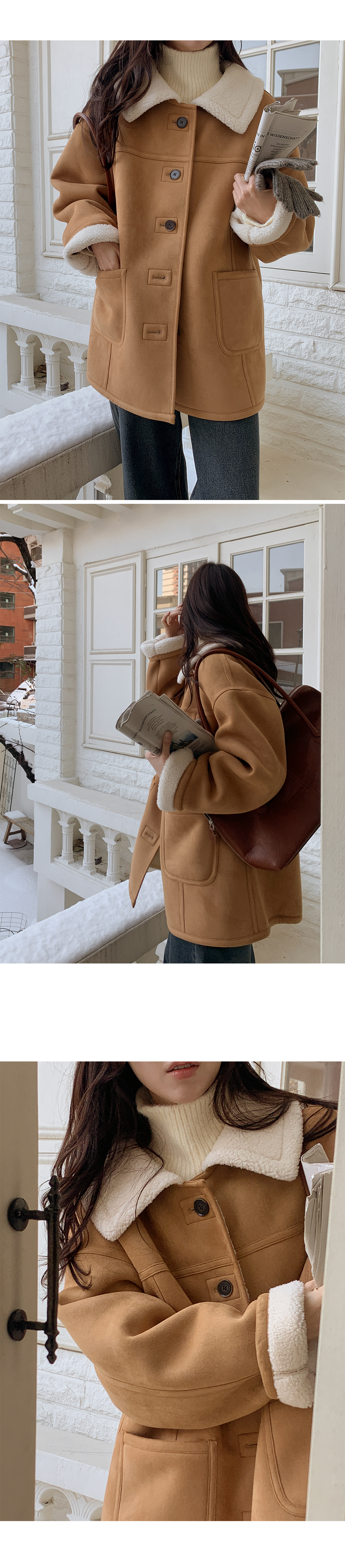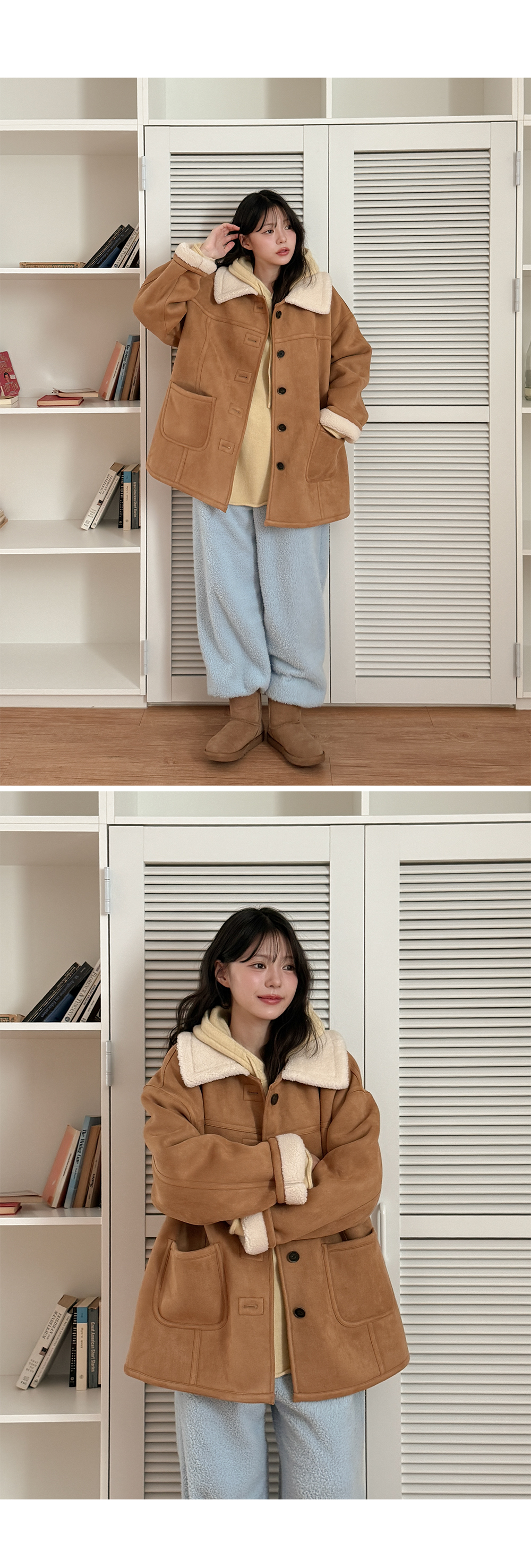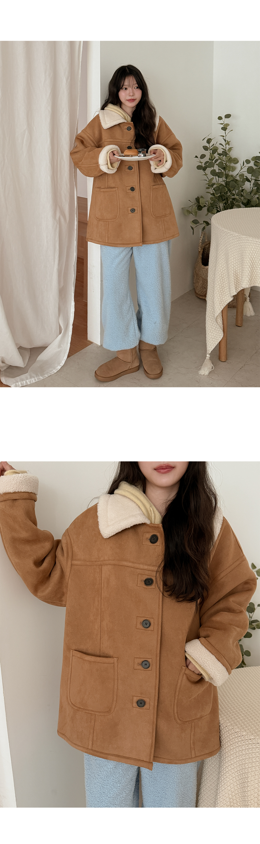 입는 순간 따스함이 채워지는 하프 무스탕 자켓이에요.