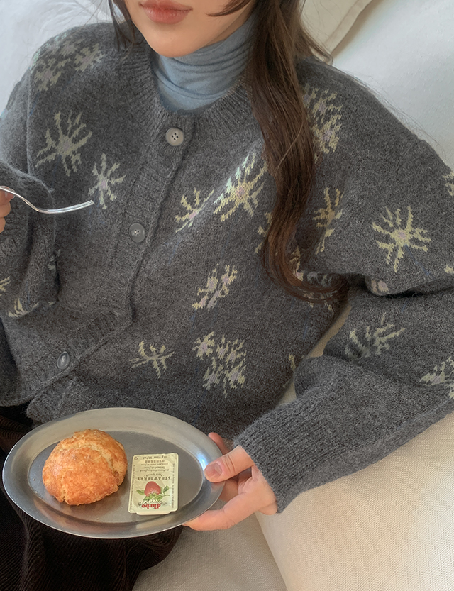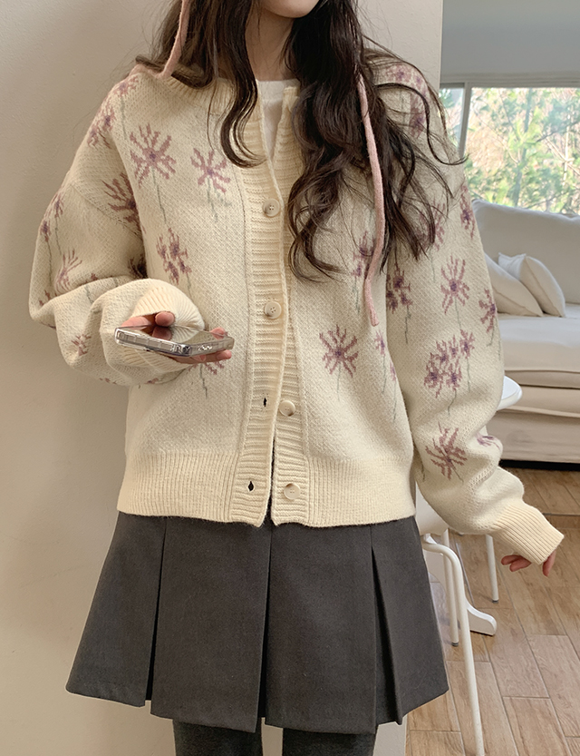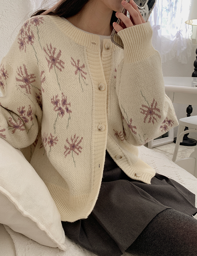 플라워 패턴 니트 가디건
