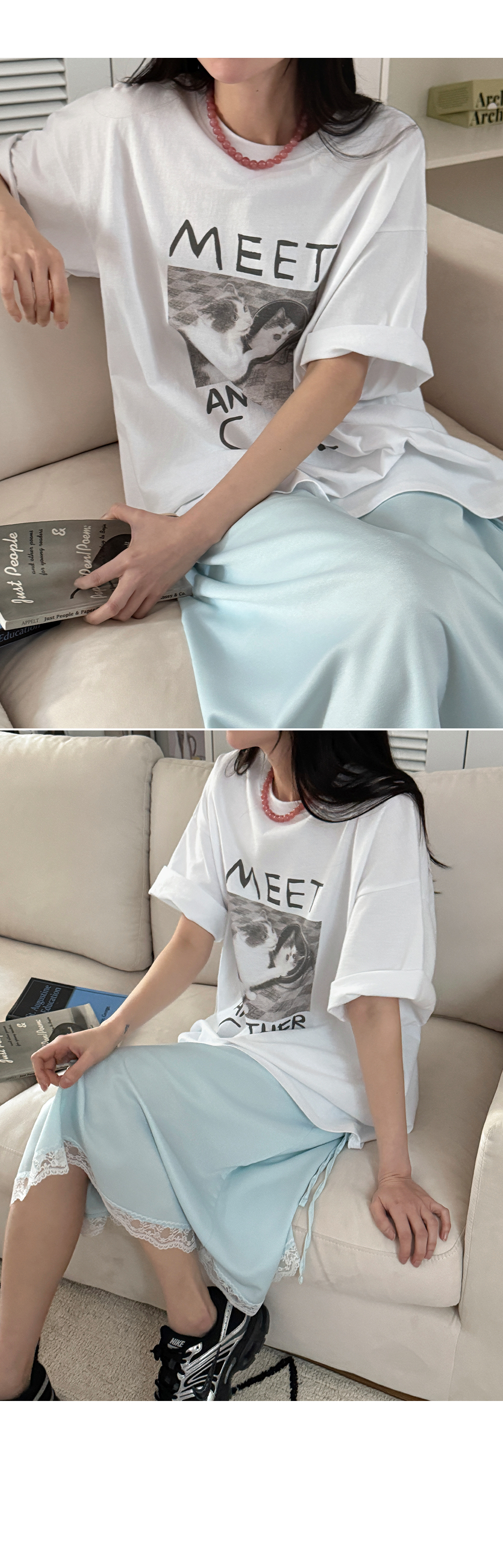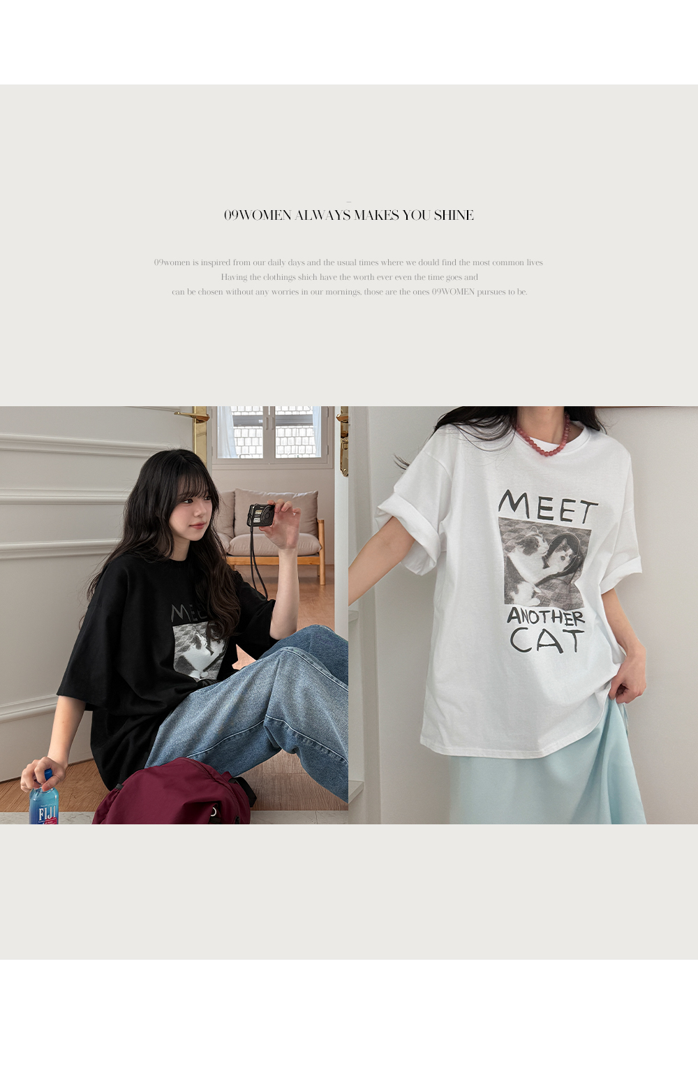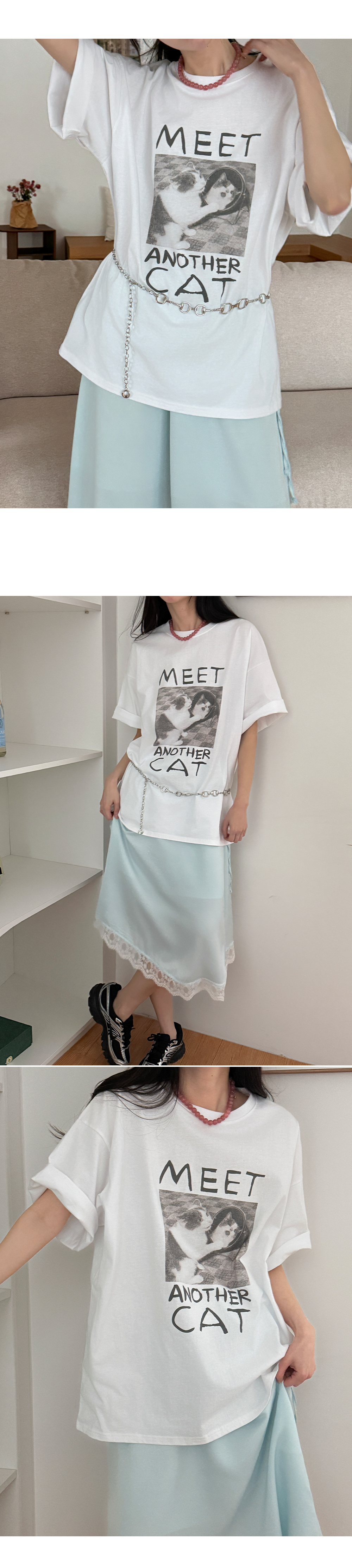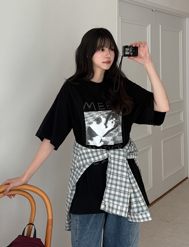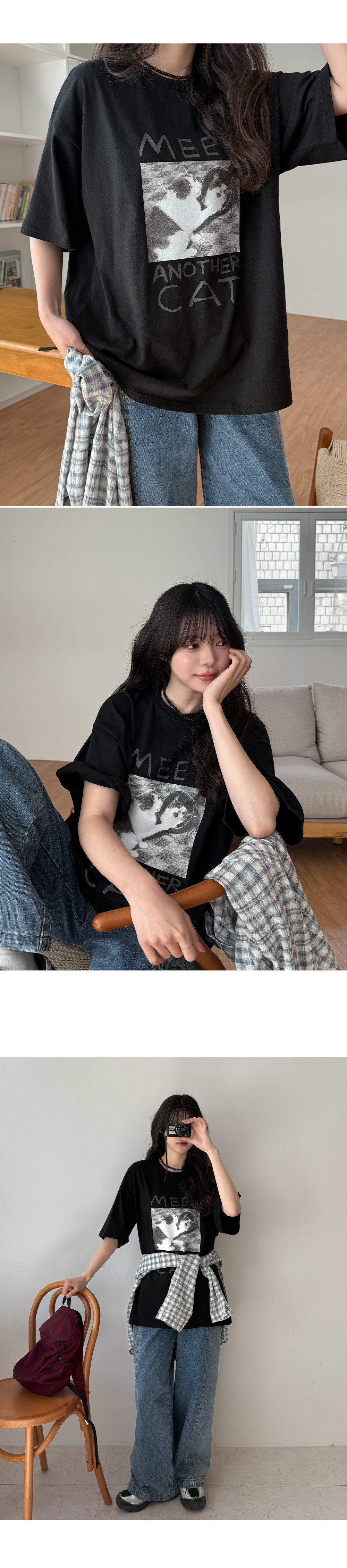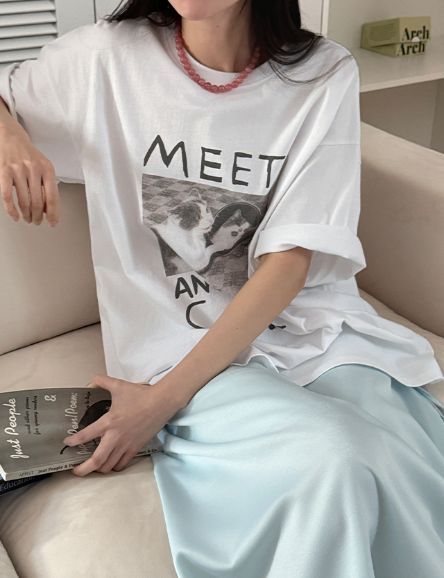 귀여운 고양이 프린트가 전체적인 분위기를