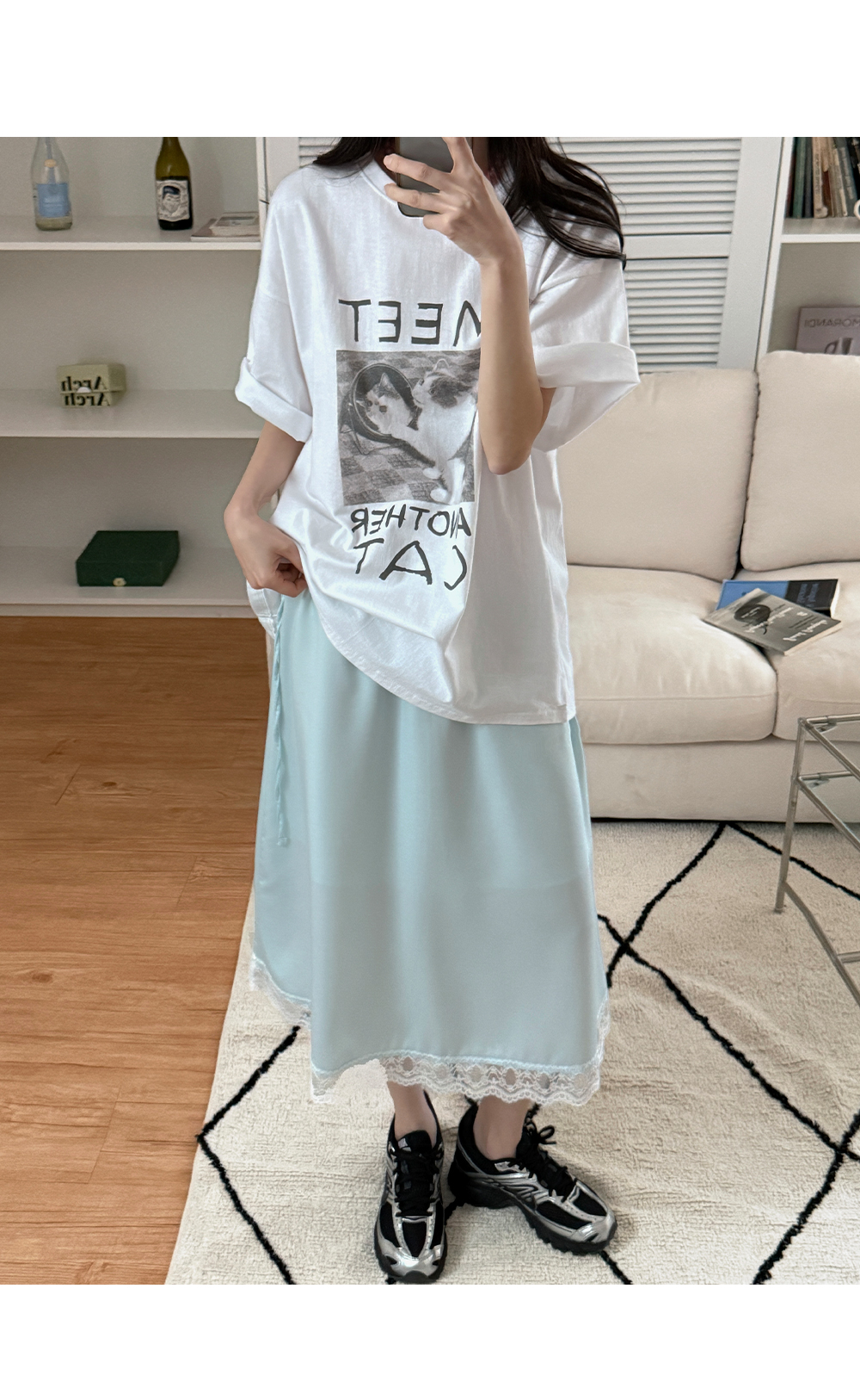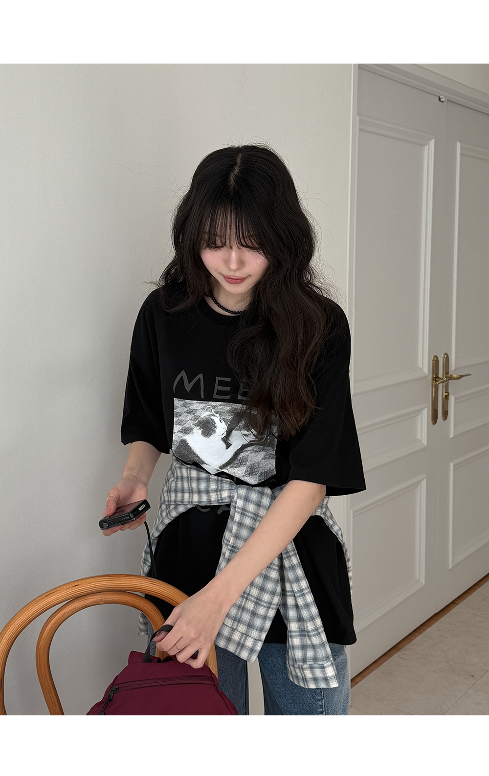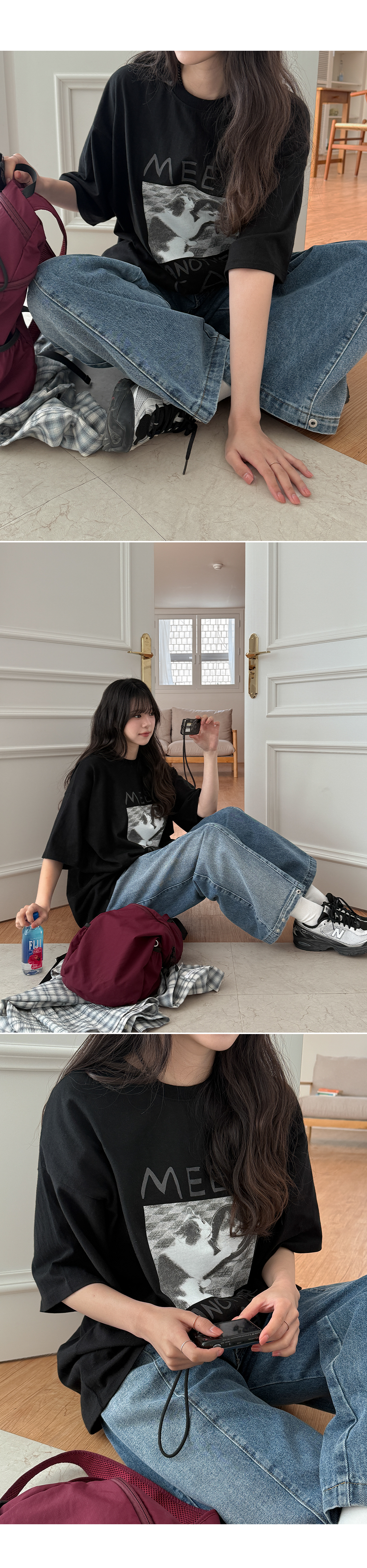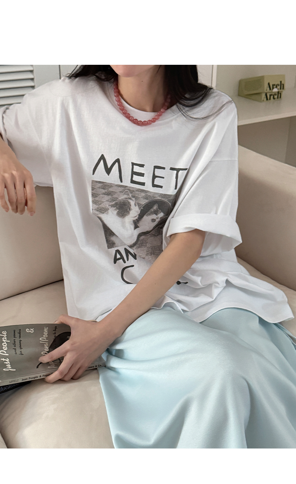 귀여운 고양이 프린트가 전체적인 분위기를