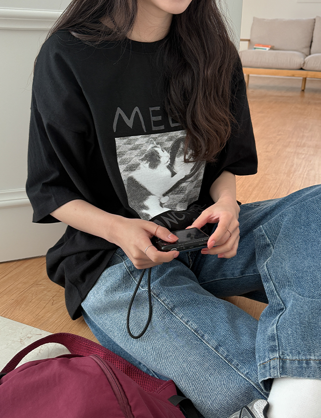 - 귀여운 디지털 프린트된 고양이가 러블리한 느낌