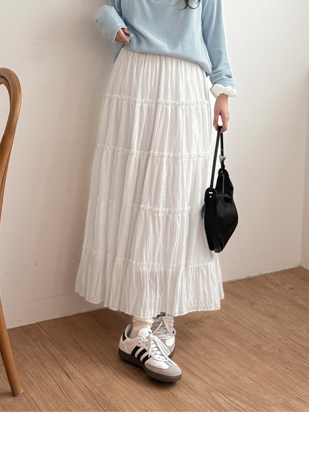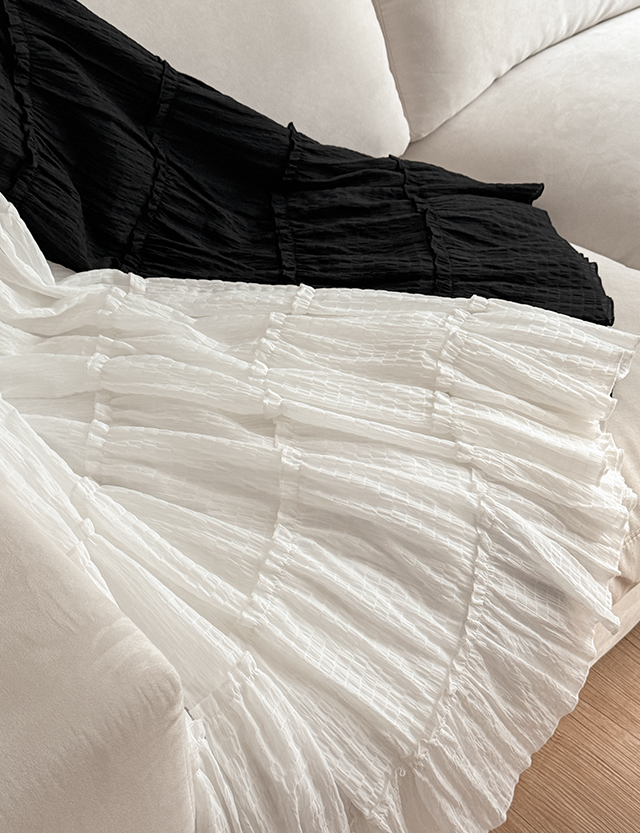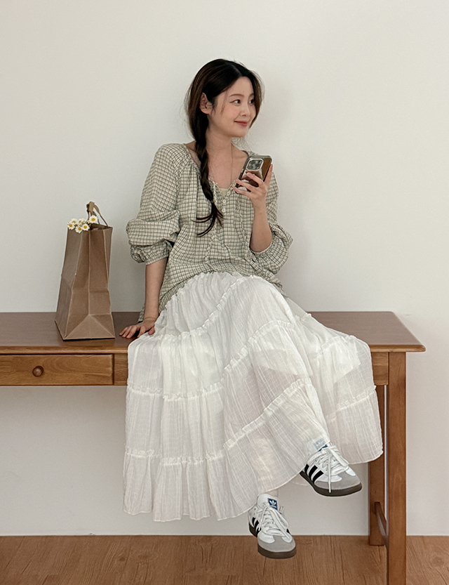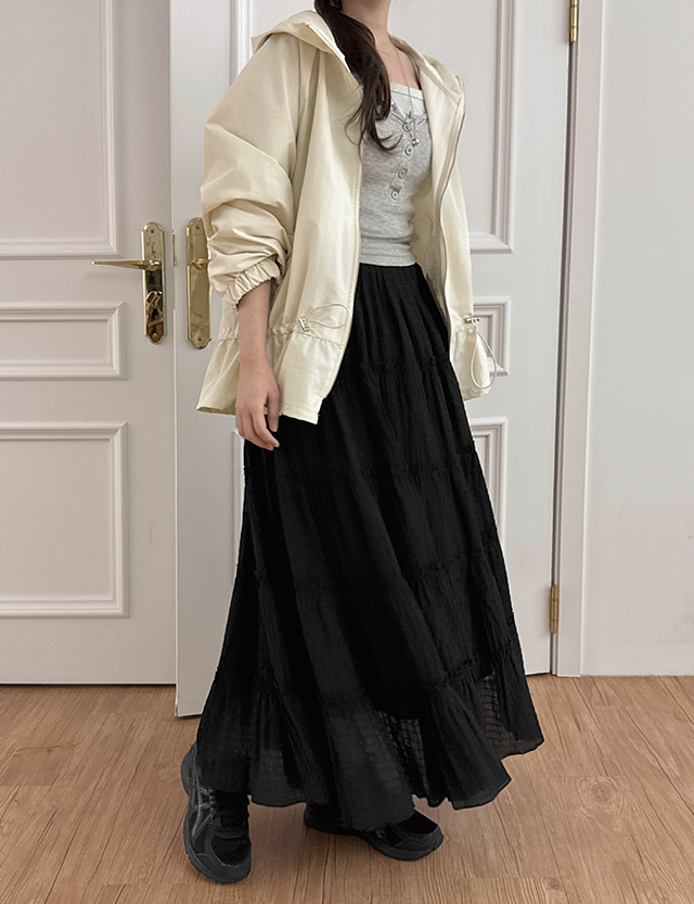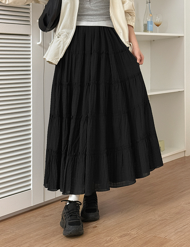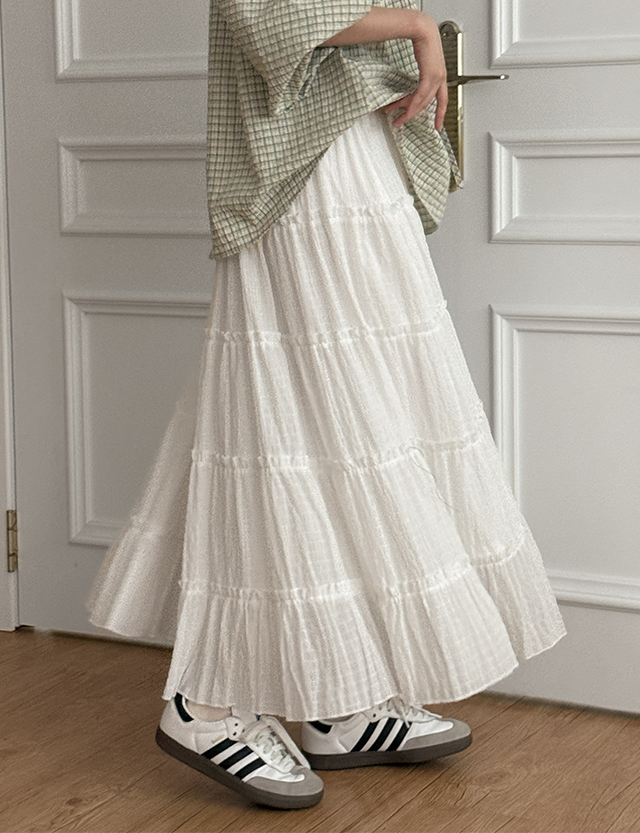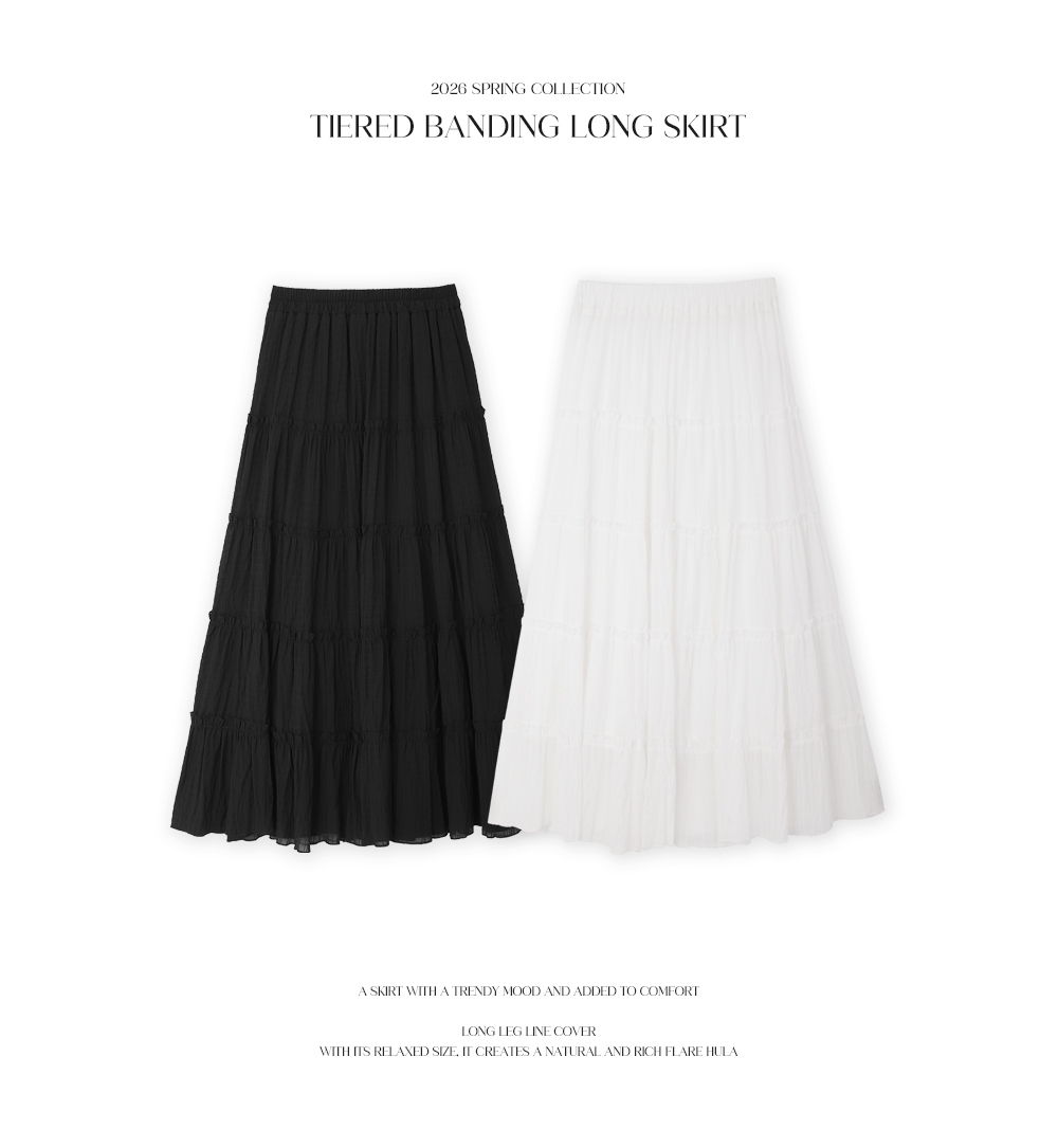 티어드 밴딩 스커트들은 자칫 잘못하면 부해보일 수 있지만,