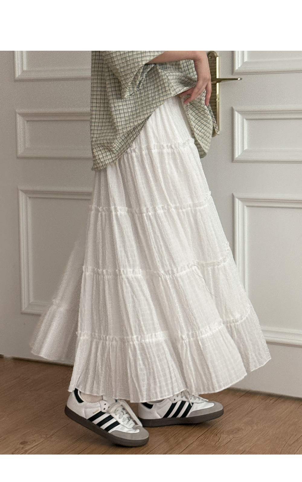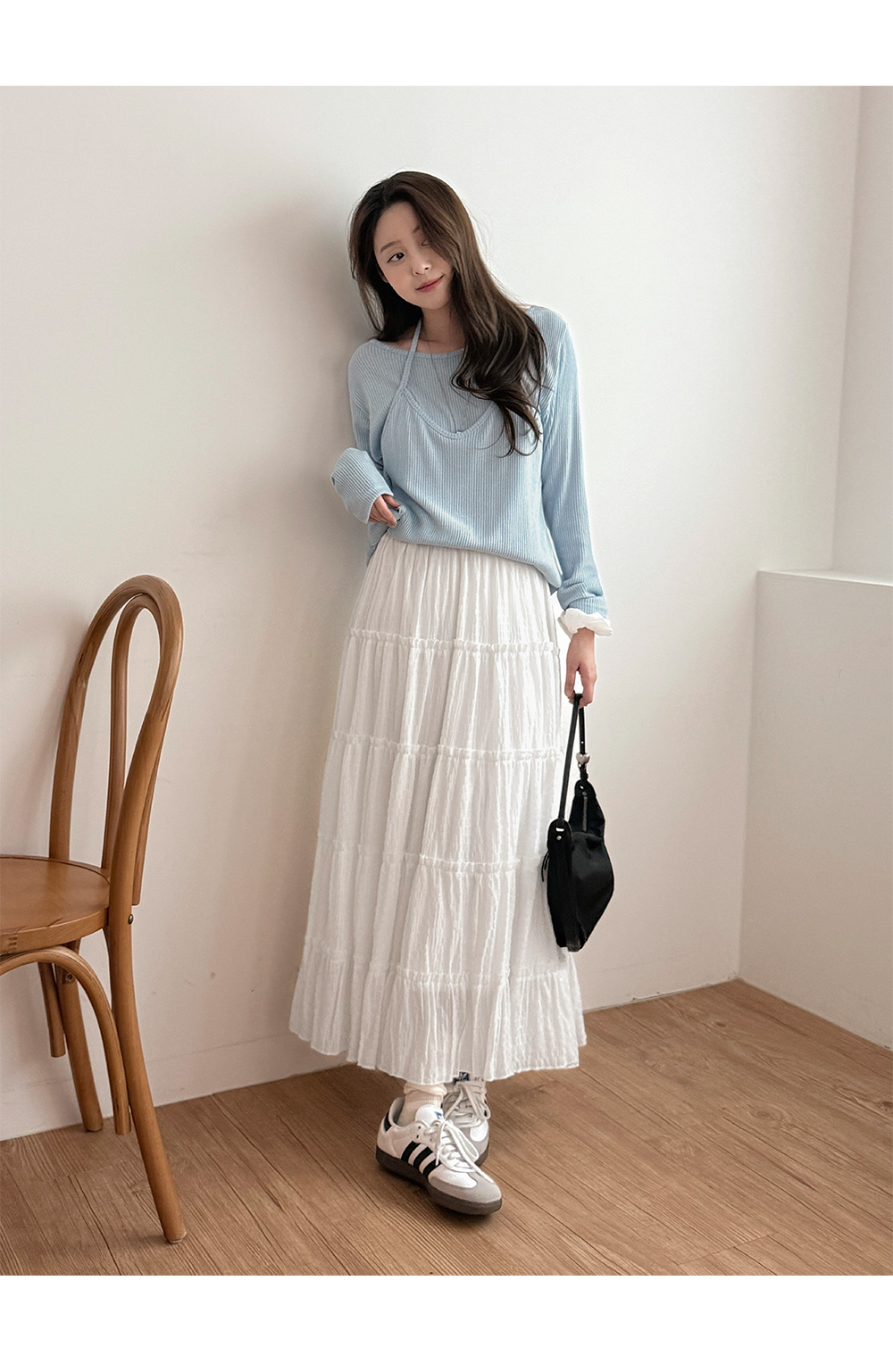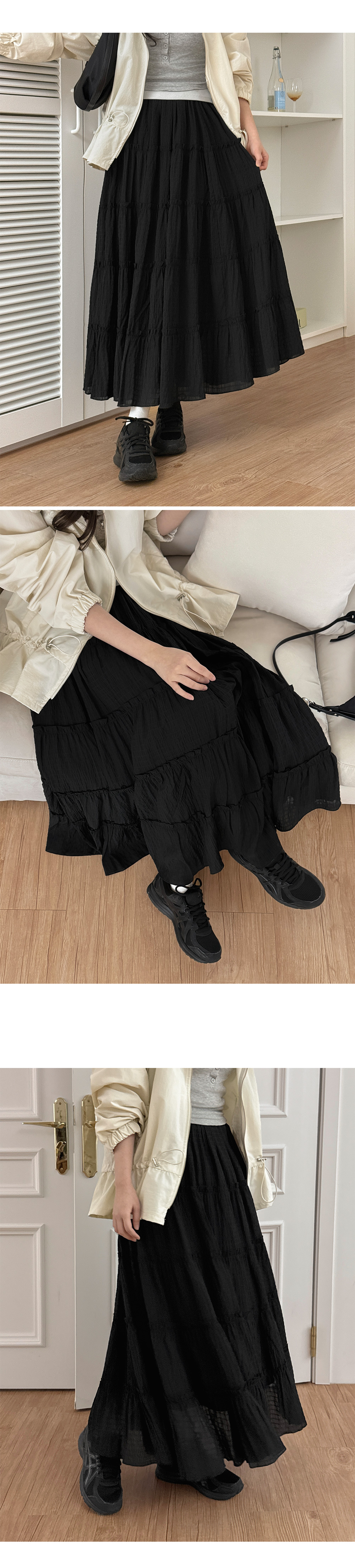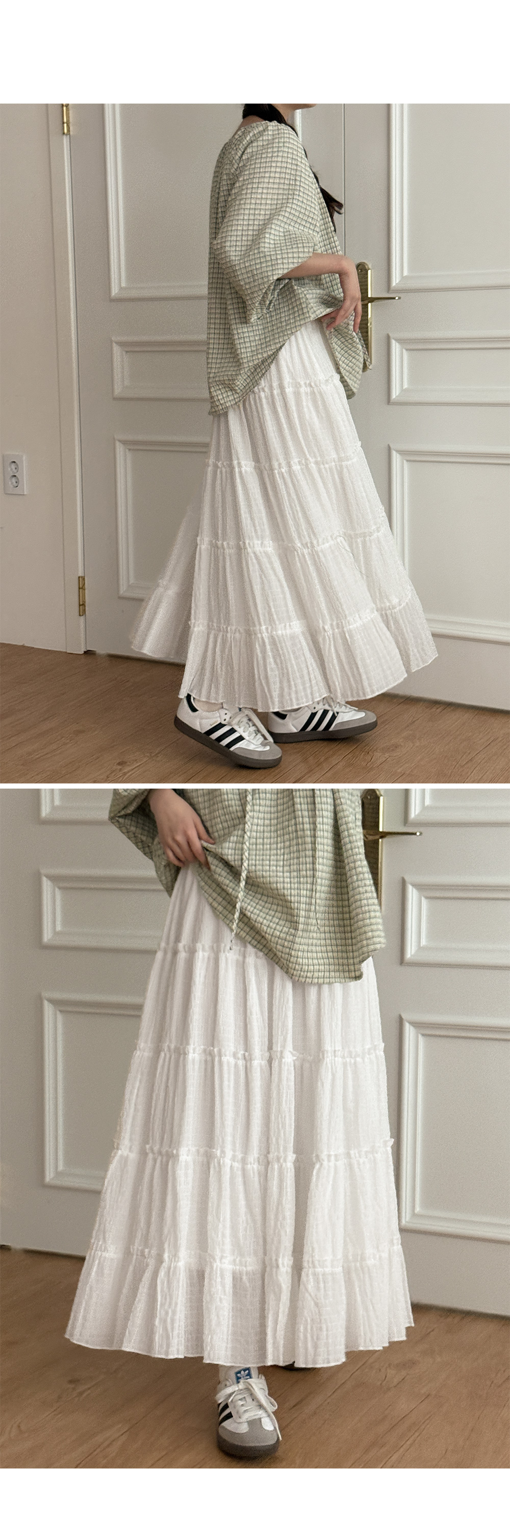 티어드 밴딩 스커트들은 자칫 잘못하면 부해보일 수 있지만,