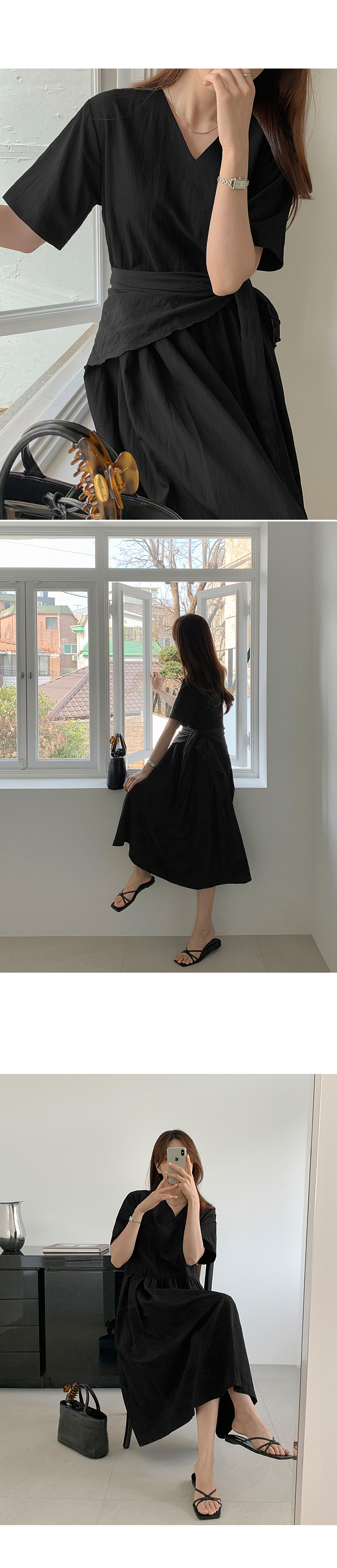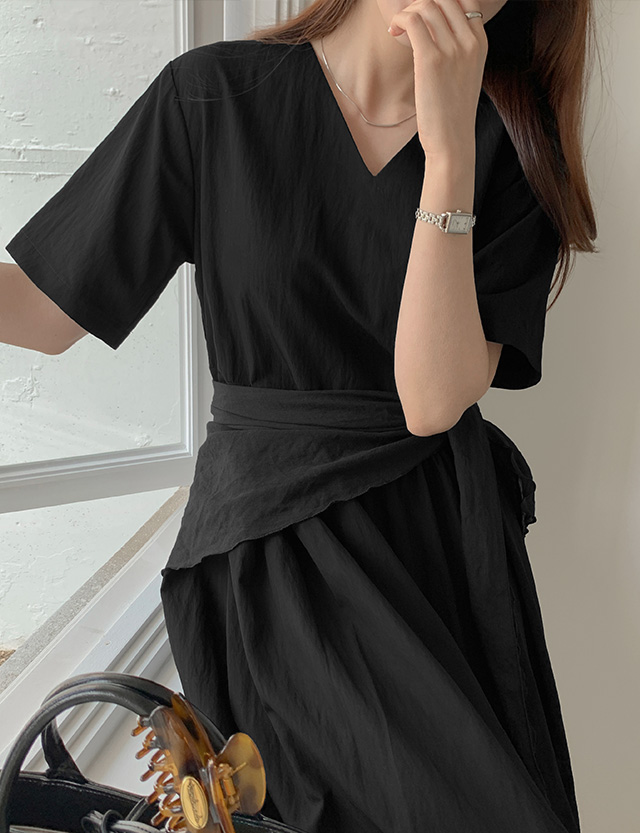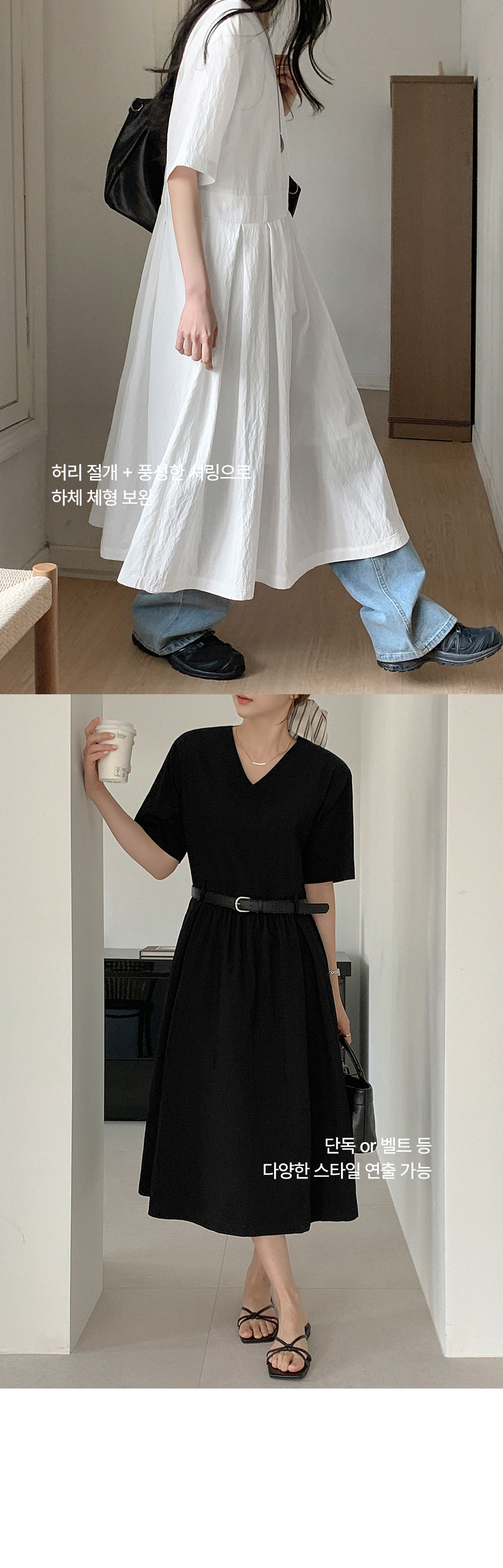 - 허리 절개 + 풍성한 셔링으로 하체 체형 보완