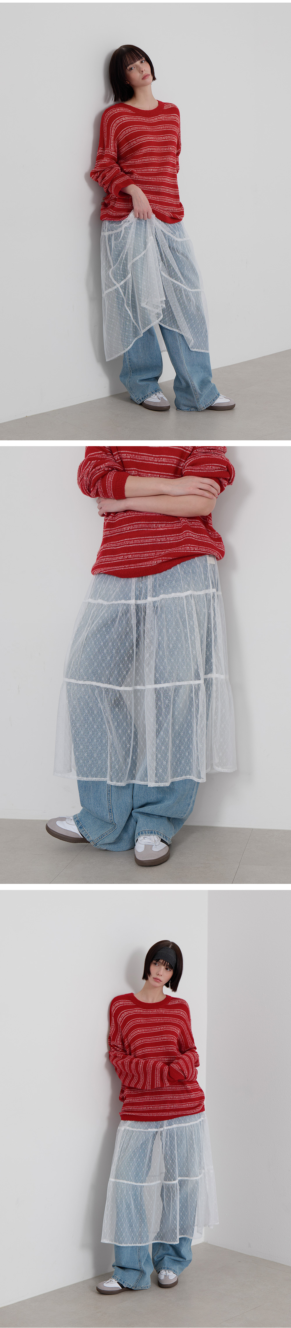 · 룩에 포인트를 더해주는 감성적인 미디 스커트