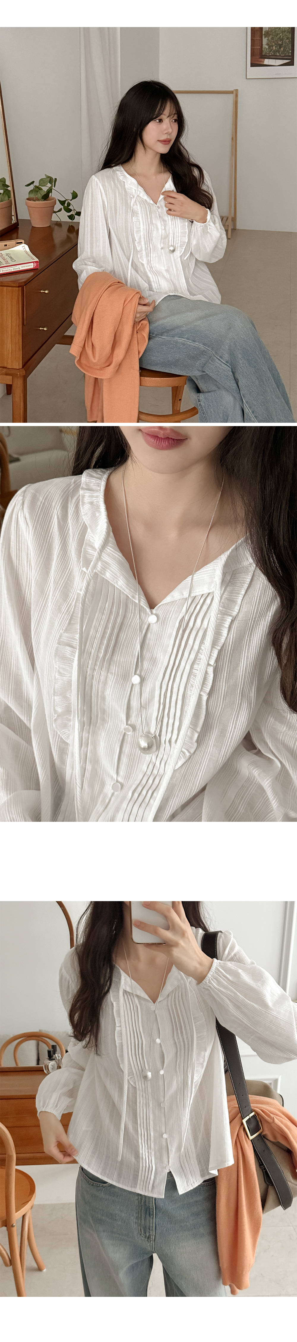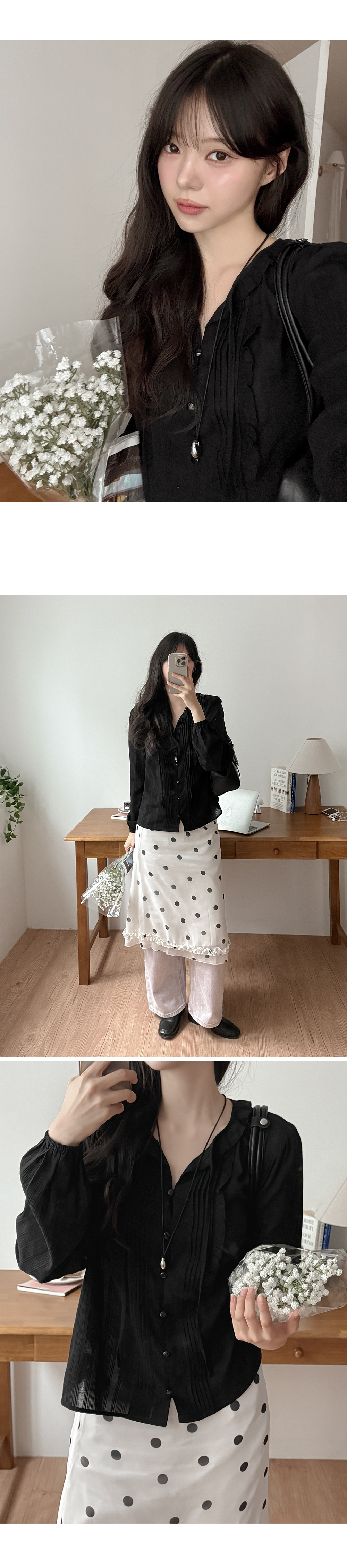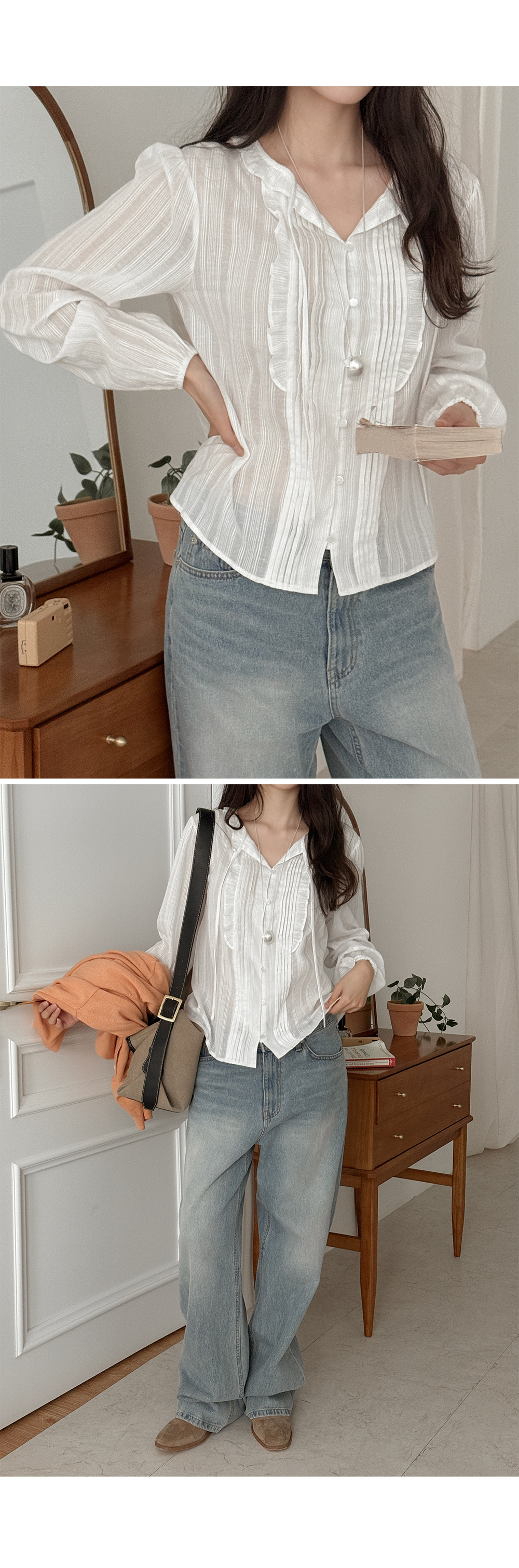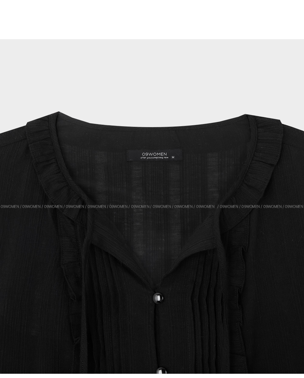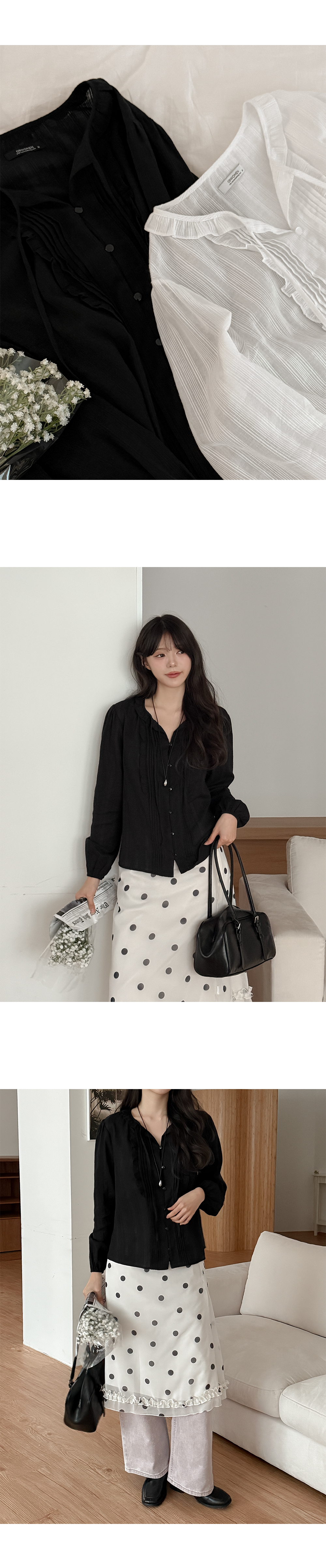 촘촘한 핀턱과 살랑이는 프릴, 그리고 결이 살아있는 원단이 만나
