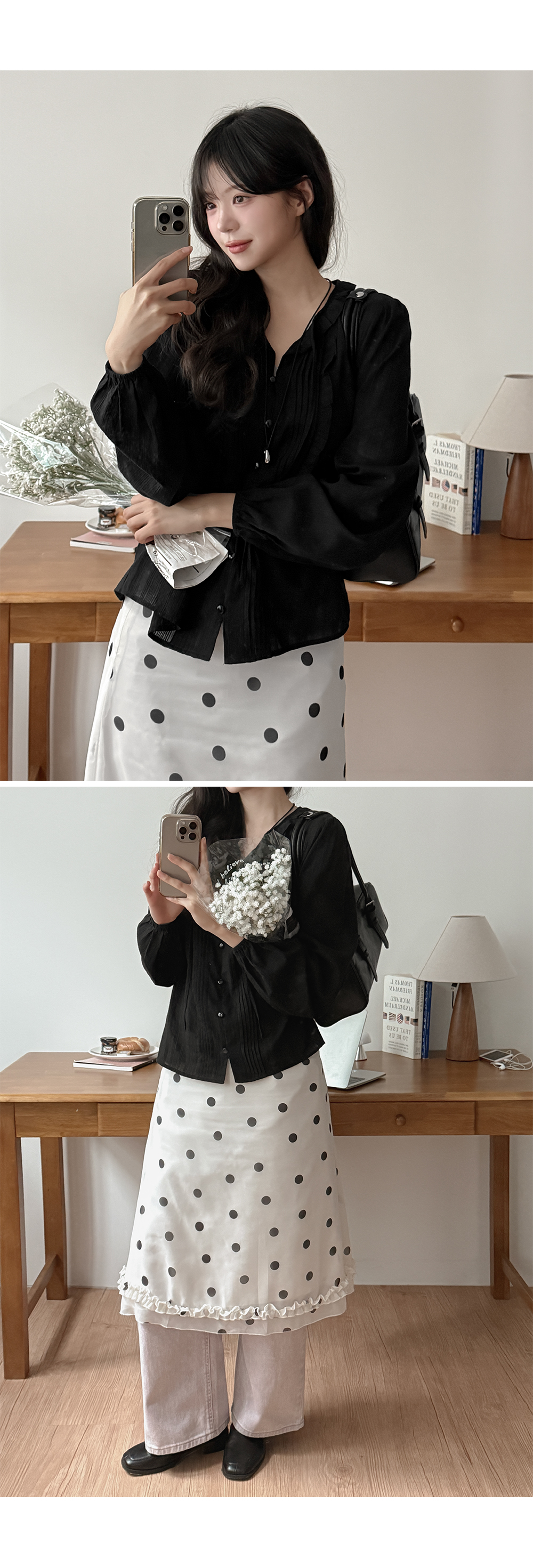 - 과하지 않은 볼륨감의 퍼프소매로 체형 보완 효과