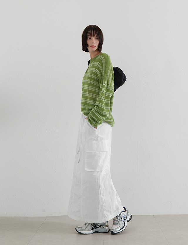 · 세로 절개 디테일로 다리가 길어 보이는 효과