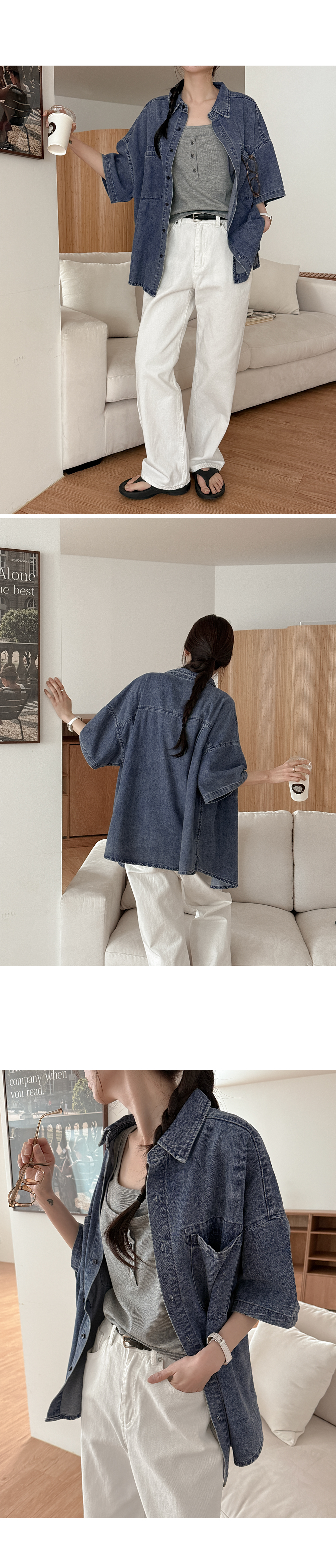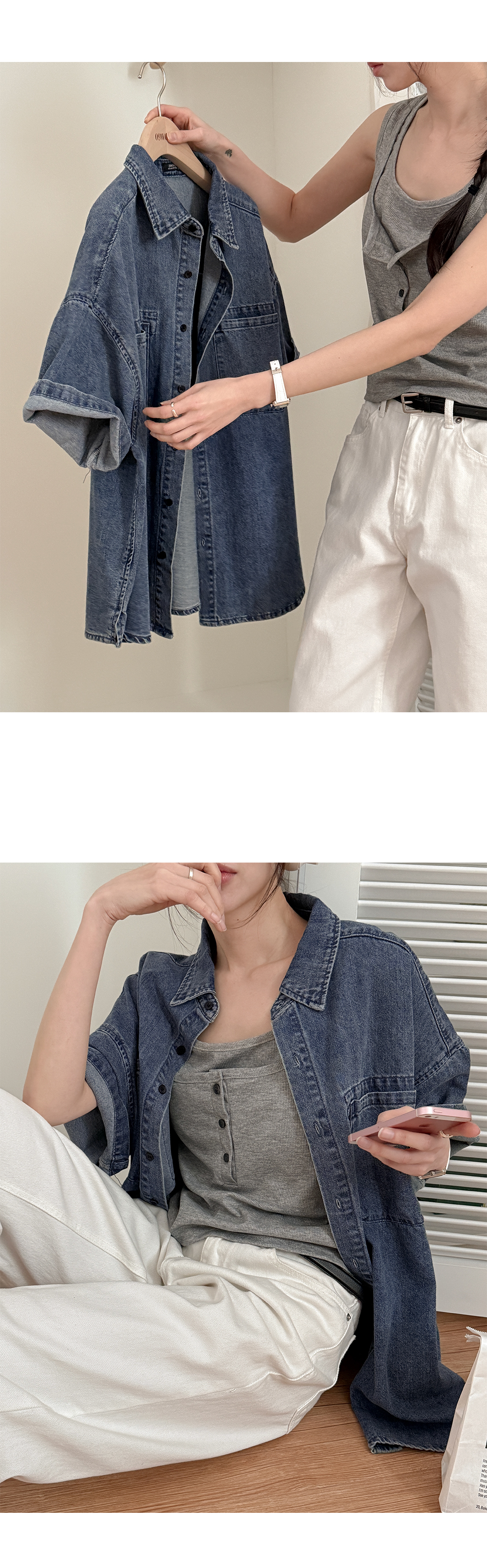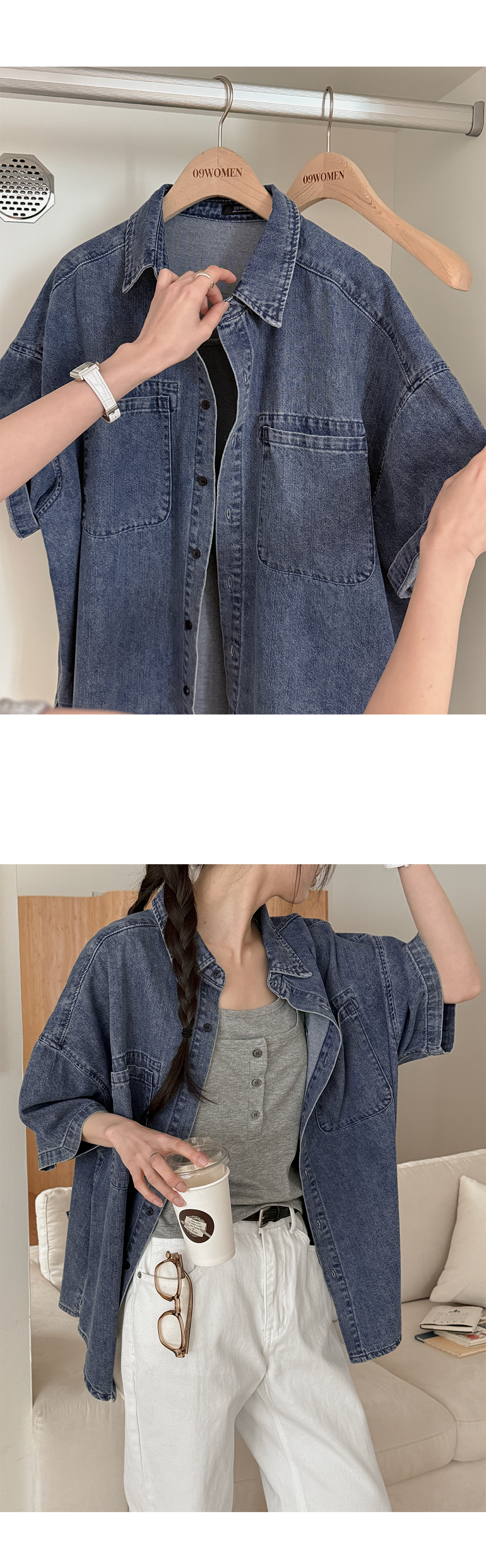 귀여운 꾸러기 무드가 느껴지는 데님 셔츠에요!