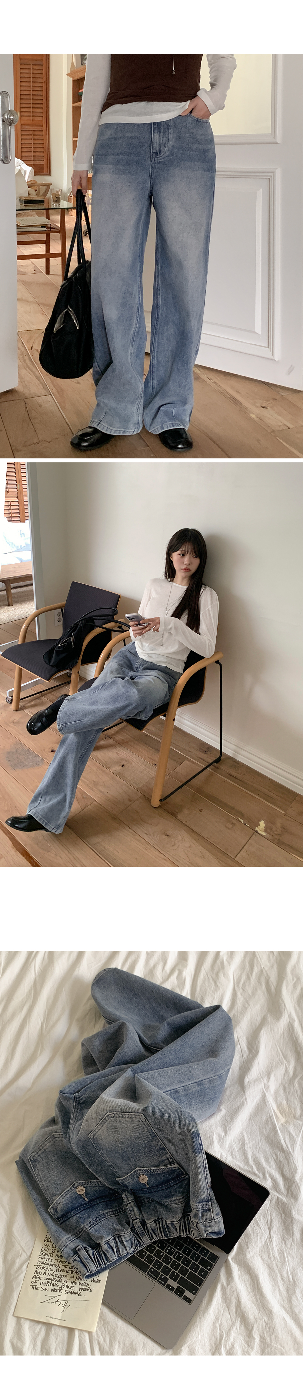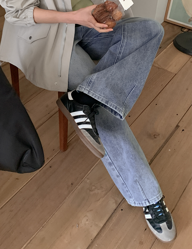 단순한 와이드 핏을 넘어, 밑단에 다트 디테일을 넣어