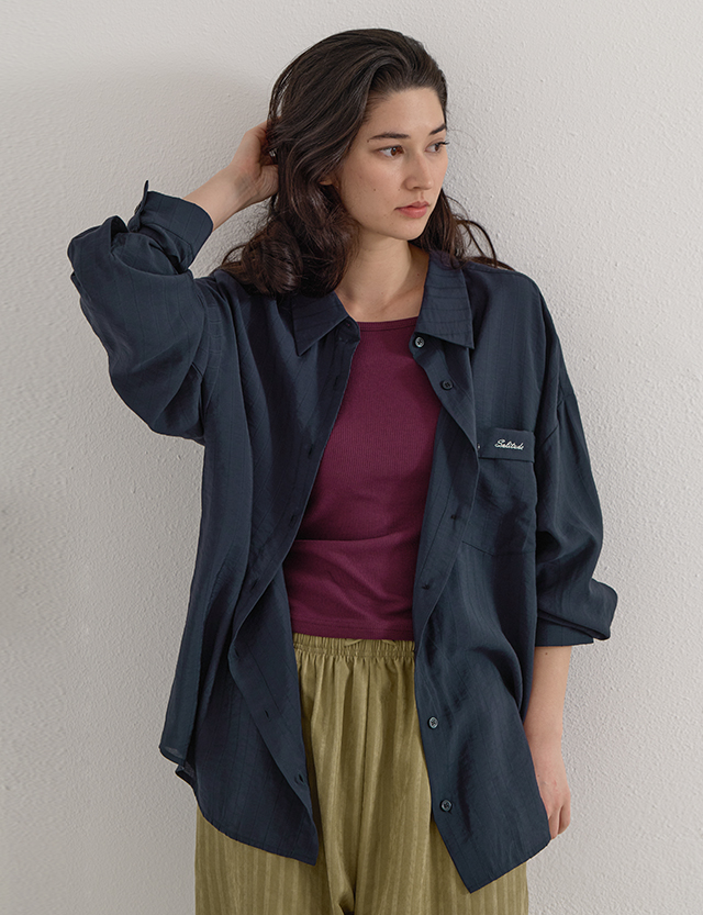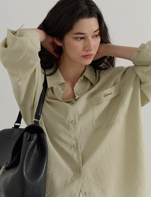 Loose-Fit Embroidered Shirt · 은은한 세로 조직감의 레이온 혼방 소재로 한여름까지 가볍고 부드러운 착용감