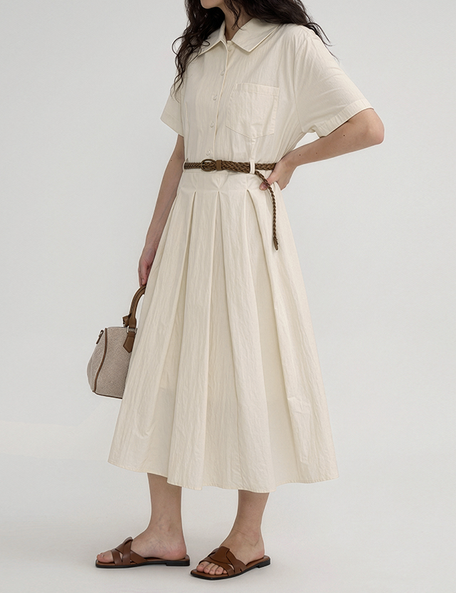 ·허리 아래로 잡힌 플리츠 디테일이 움직일 때마다 실루엣을 깔끔하게 정돈