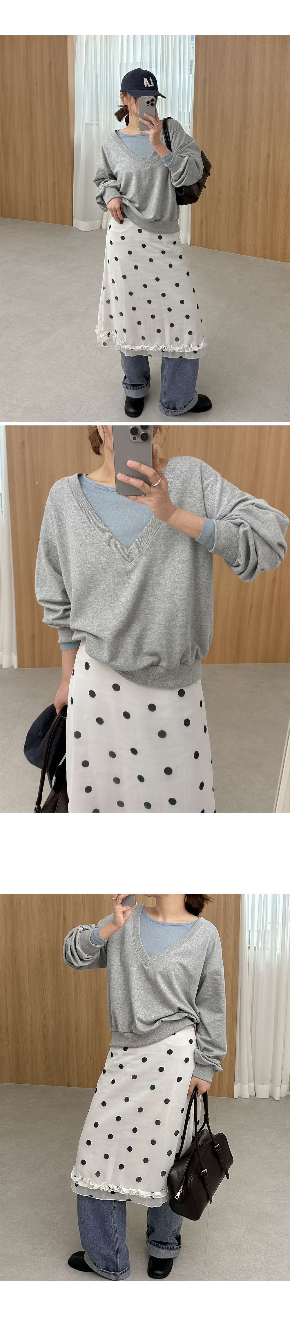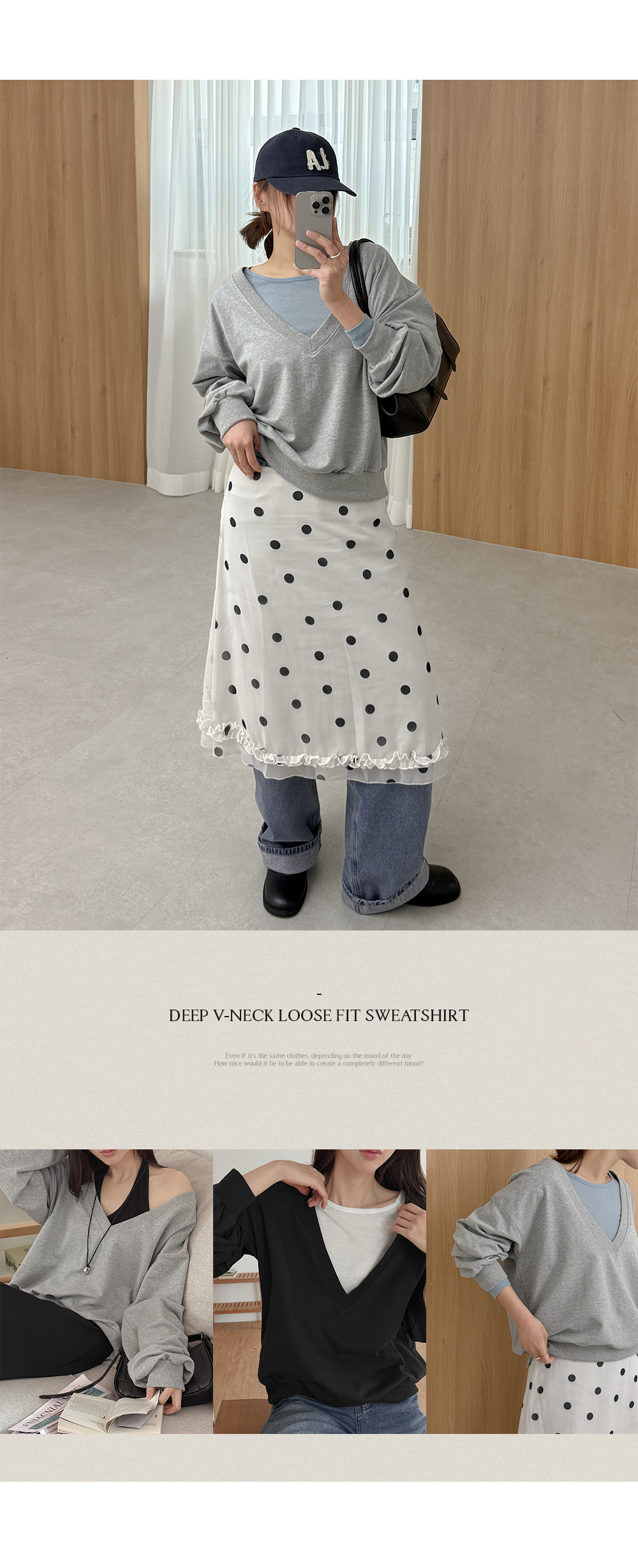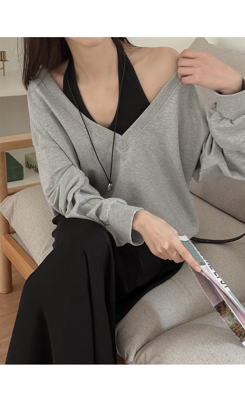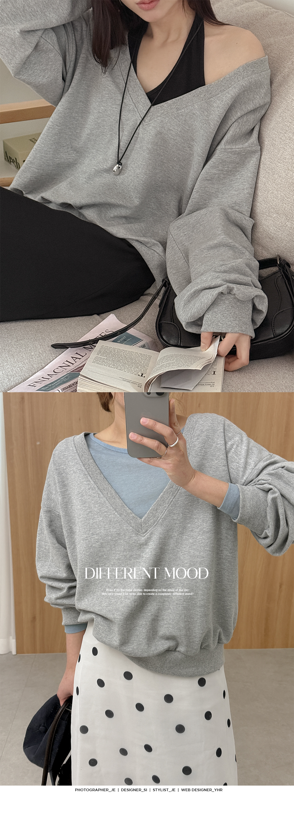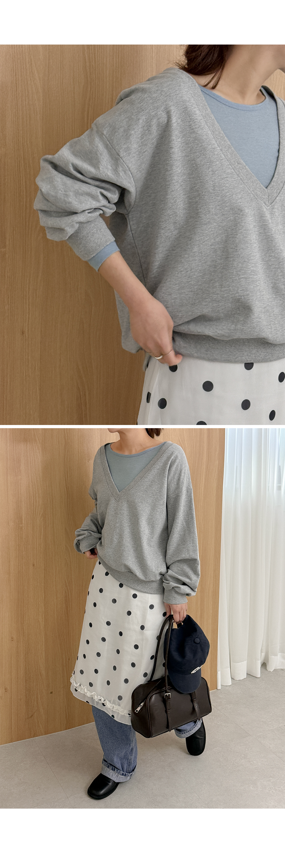 - 넓고 깊은넥으로 여리하면서 트렌디한 무드
