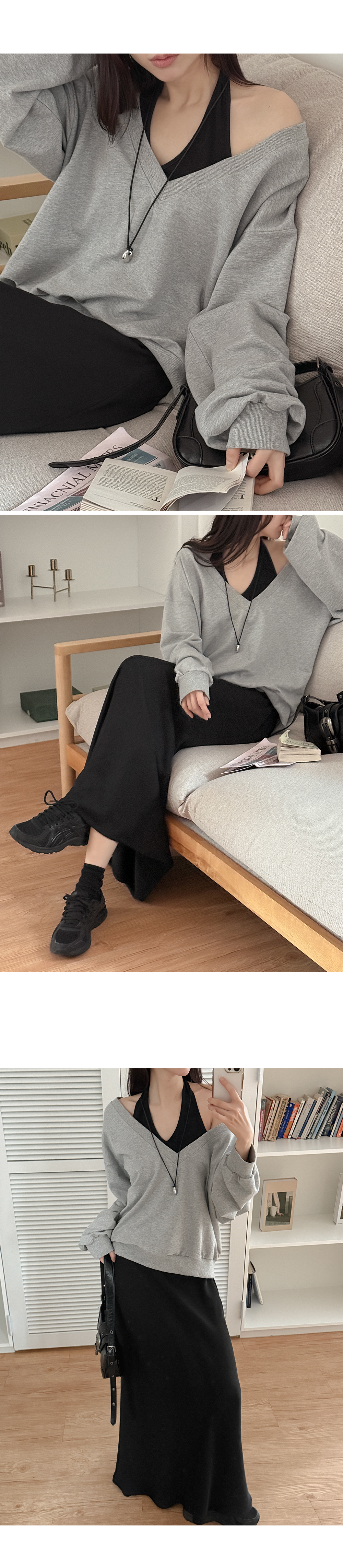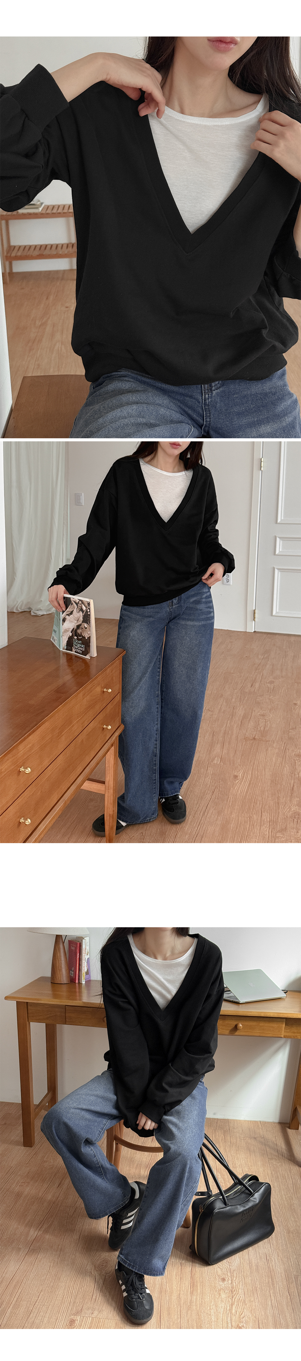 마법 같은 브이넥 맨투맨을 소개합니다.