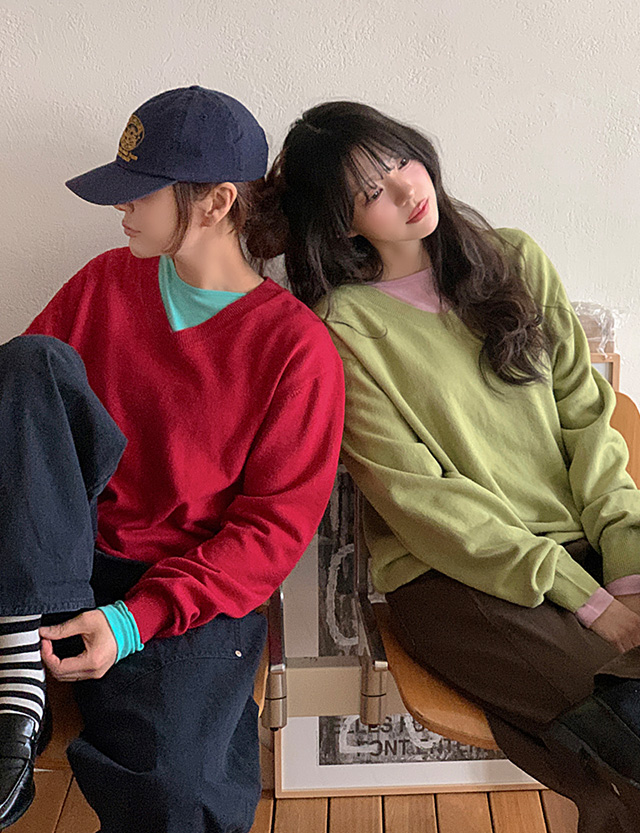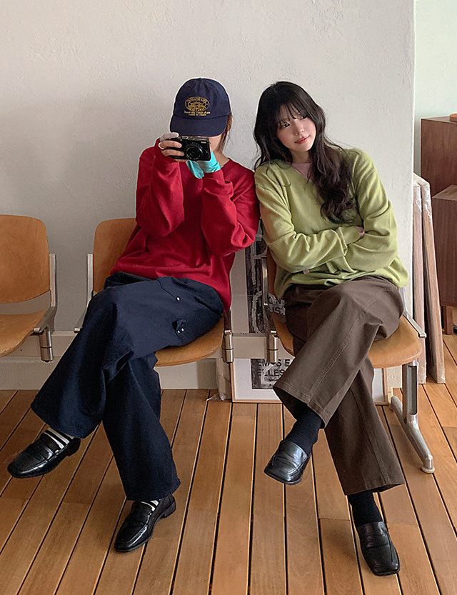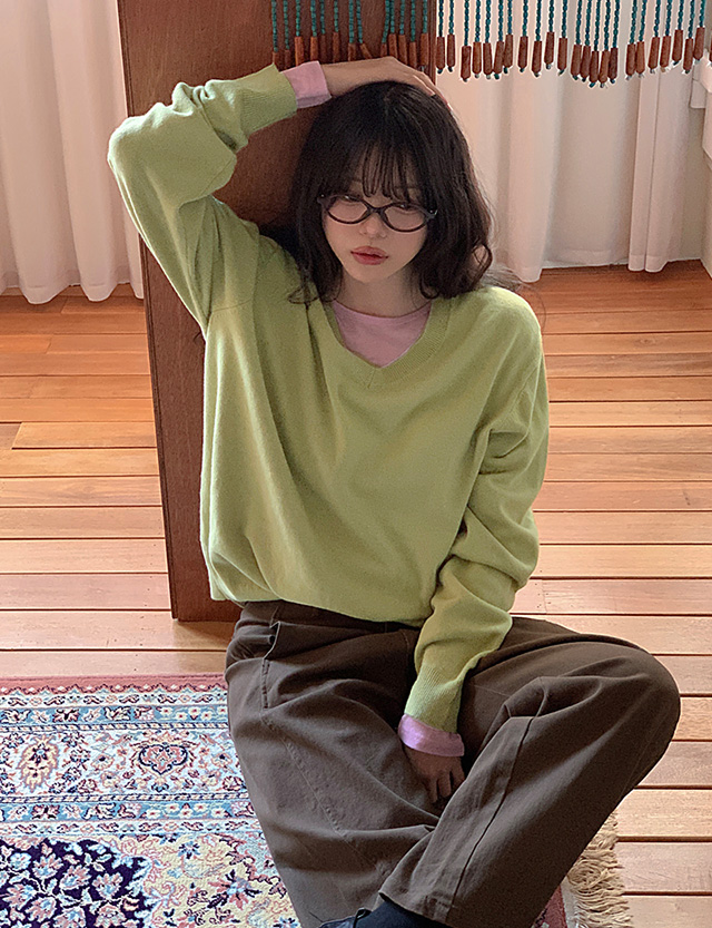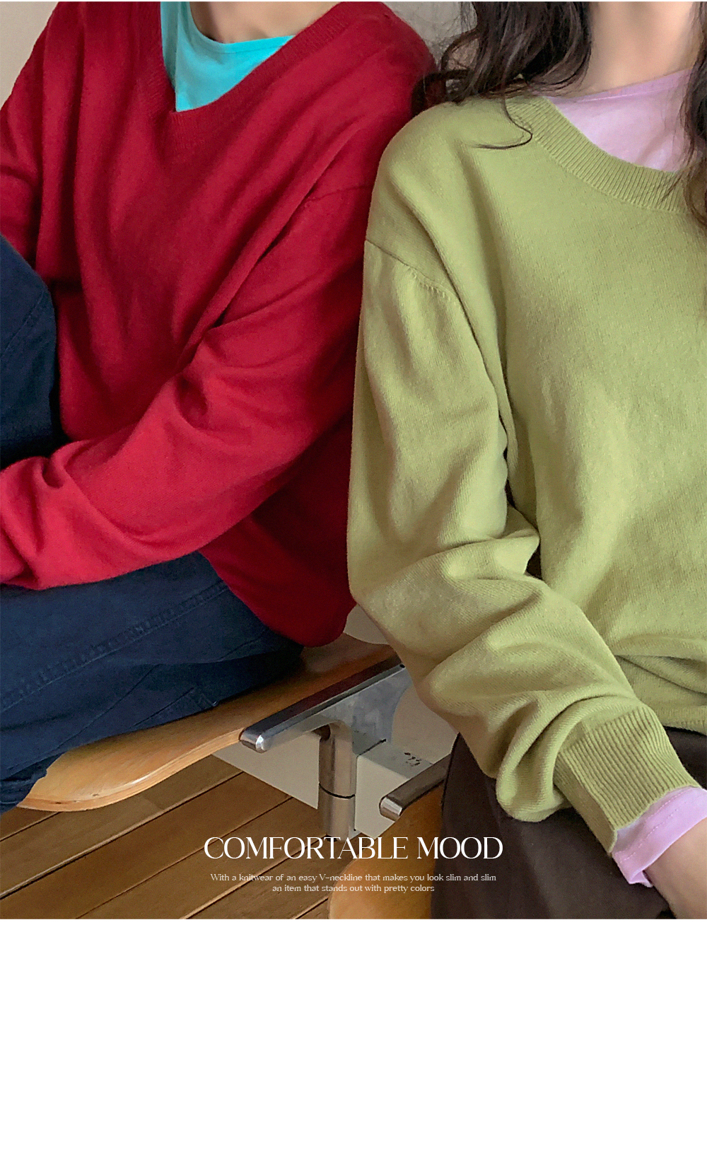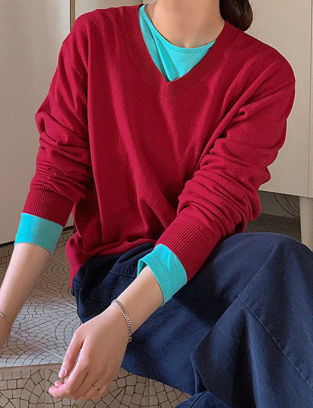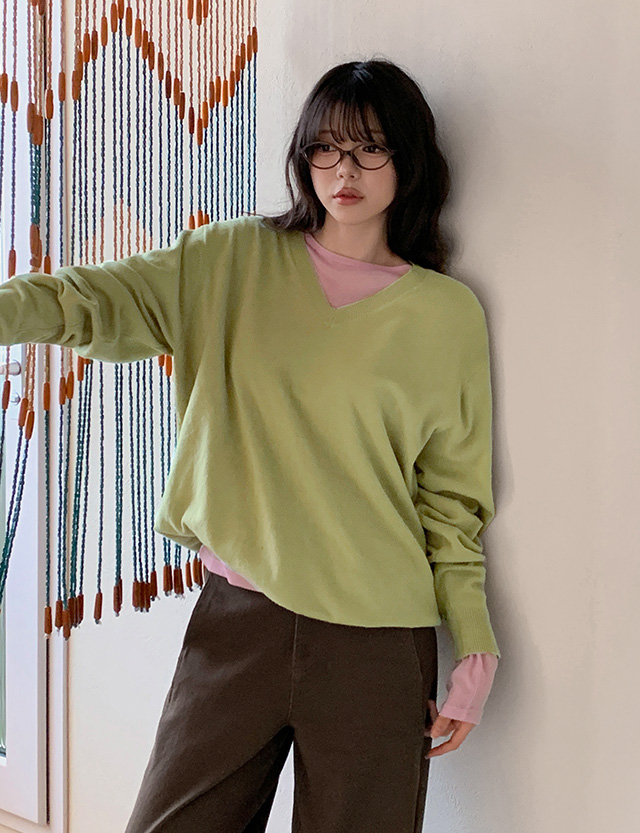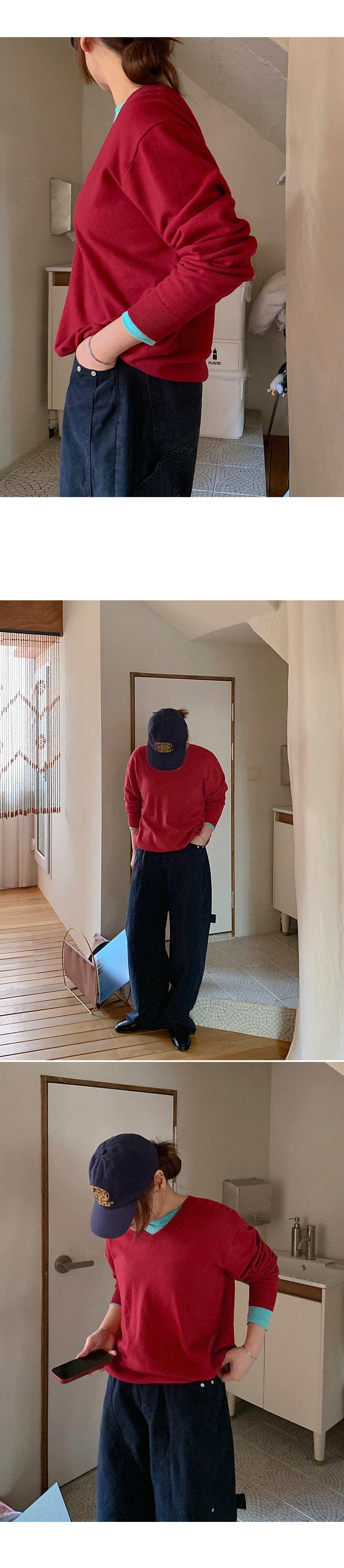 - 부담스럽지 않은 브이넥 라인