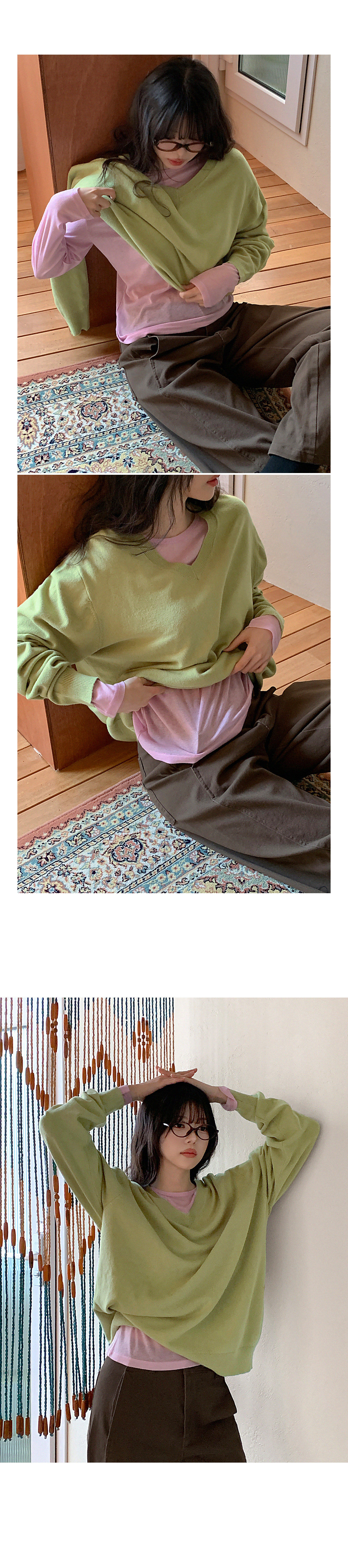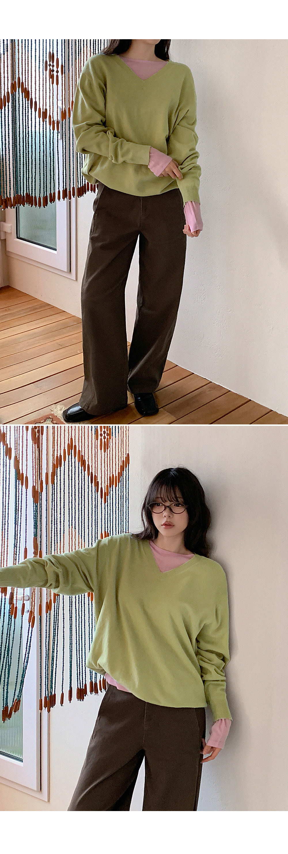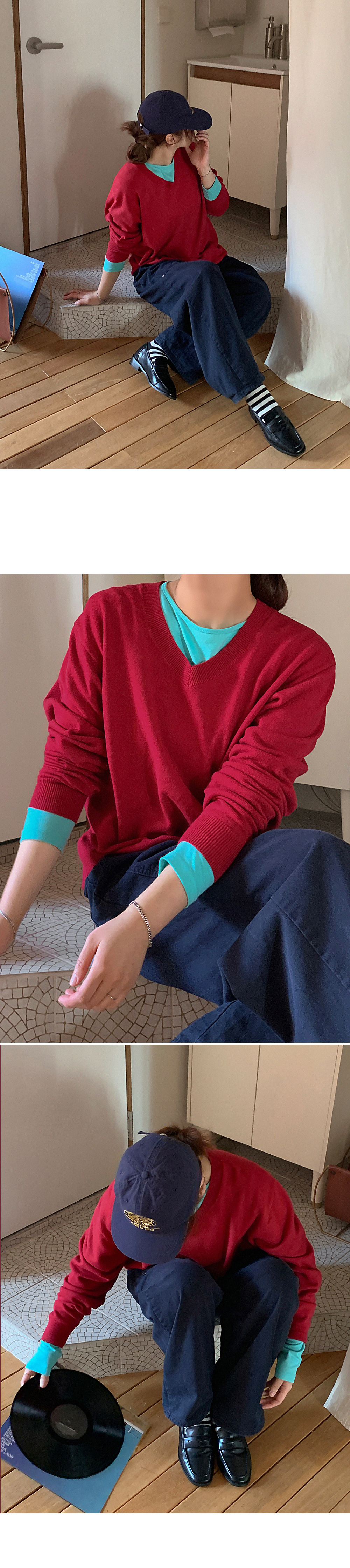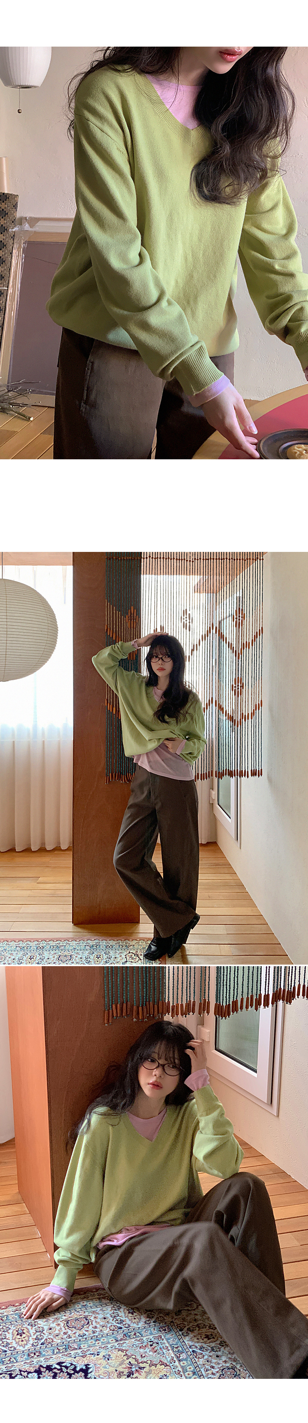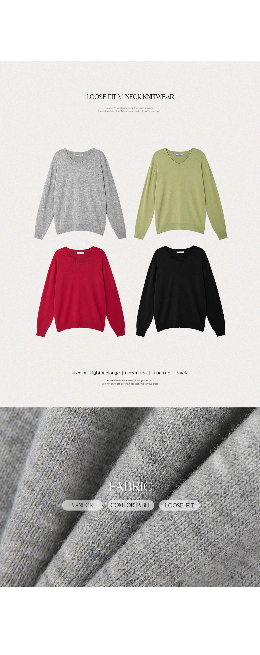 - 부담스럽지 않은 브이넥 라인